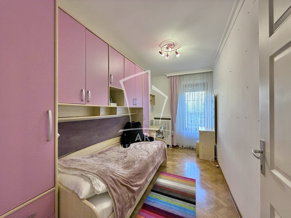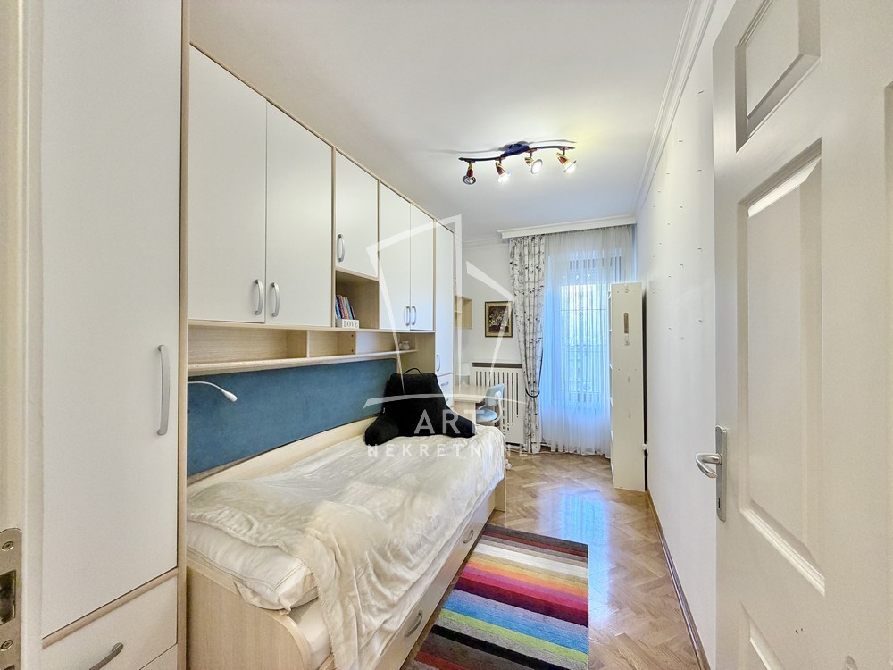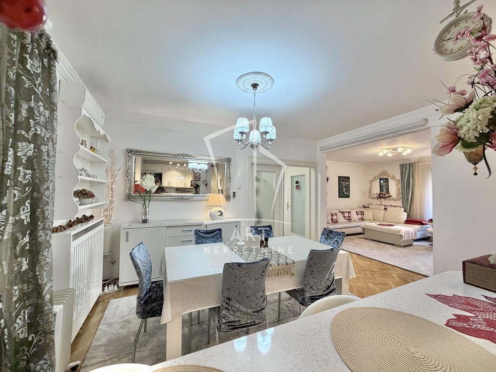 Poseduje: hodnik, prostran dnevni boravak koji izlazi na lepu terasu, kompletno opremljenu kuhinju sa svim aparatima, trpezariju, odvojen spavaći blok sa 4 sobe od kojih je jedna master spavaća soba, kupatilo i odvojen toalet, ostavu, veliku lođu i vešeraj.