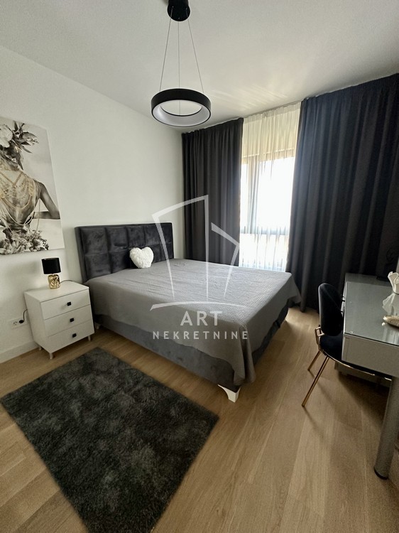 Stan je potpuno nov, a opremljen je veoma kvalitetnim i pažljivo biranim nameštajem koji pruža osećaj elegancije, komfora i luksuza.