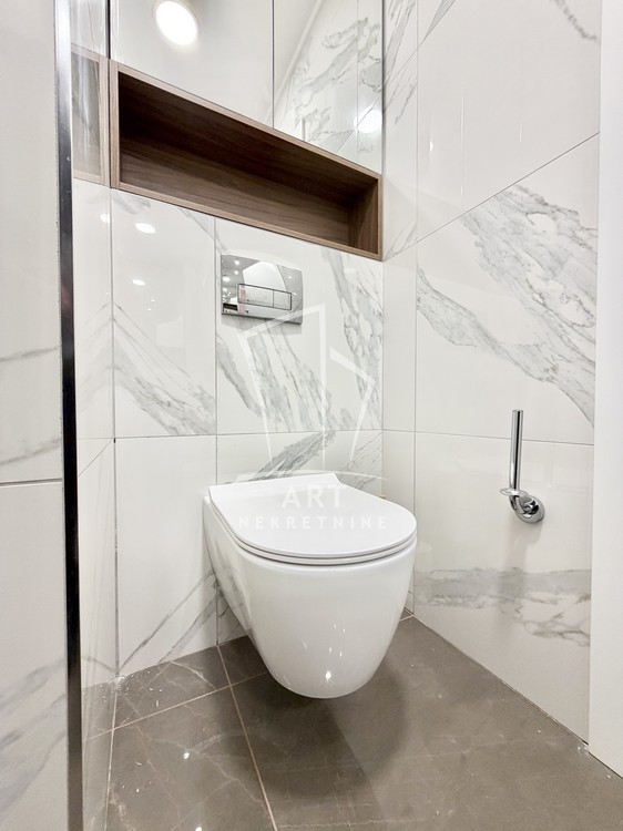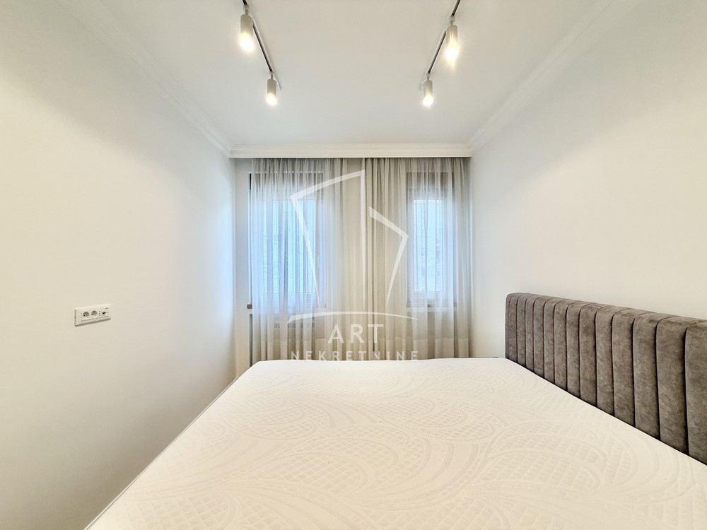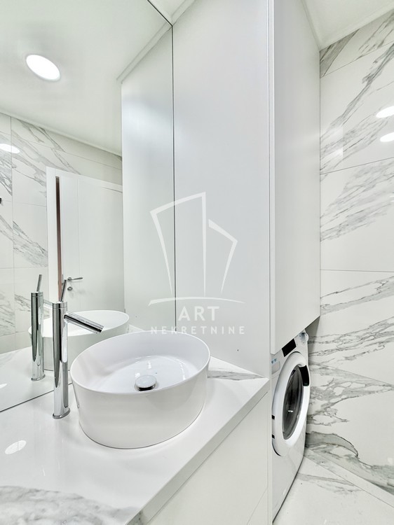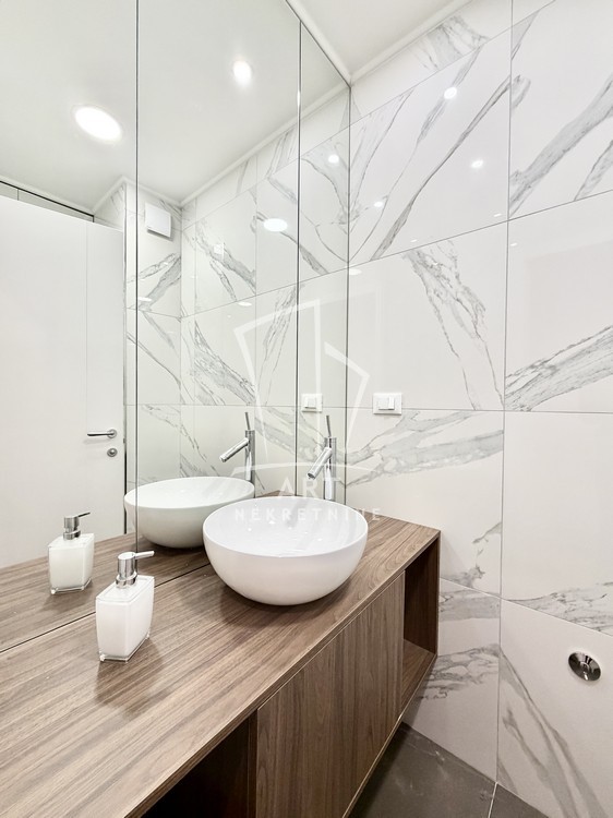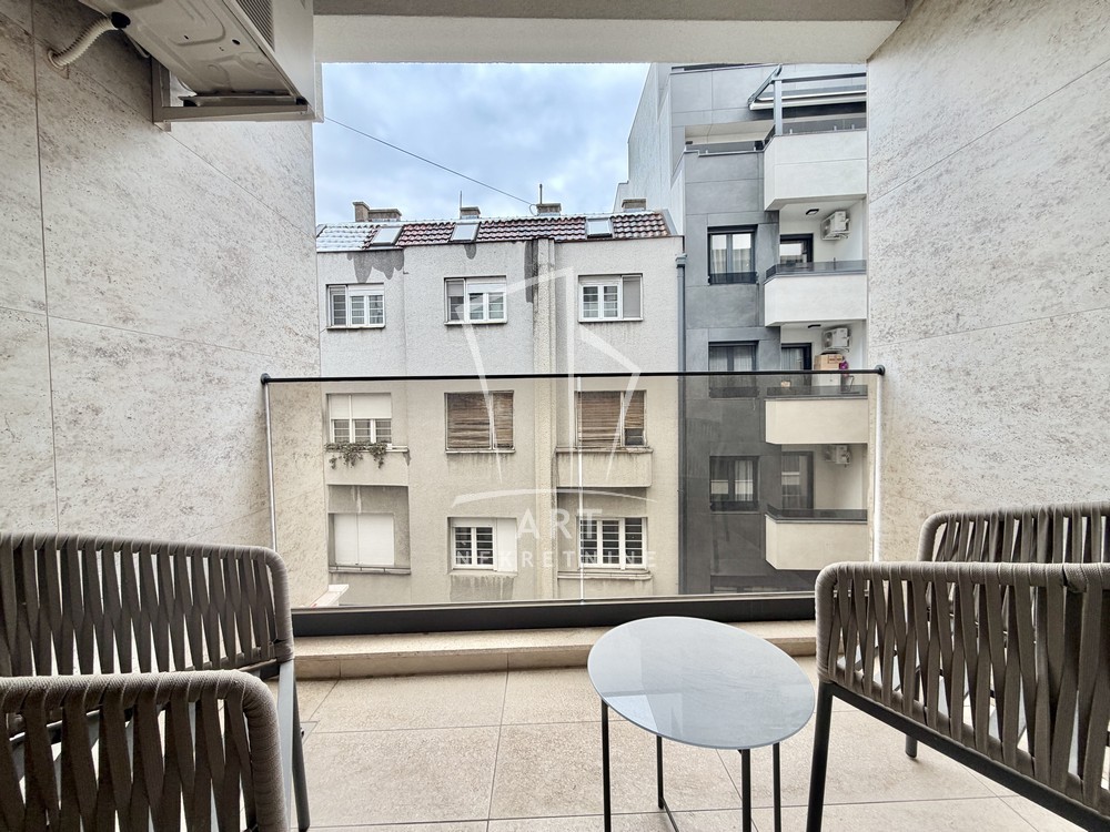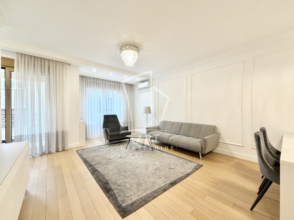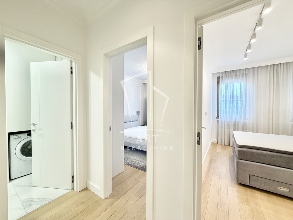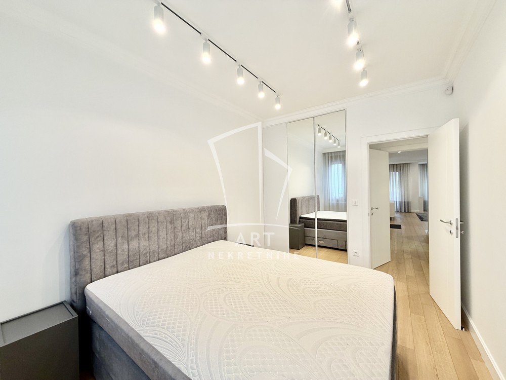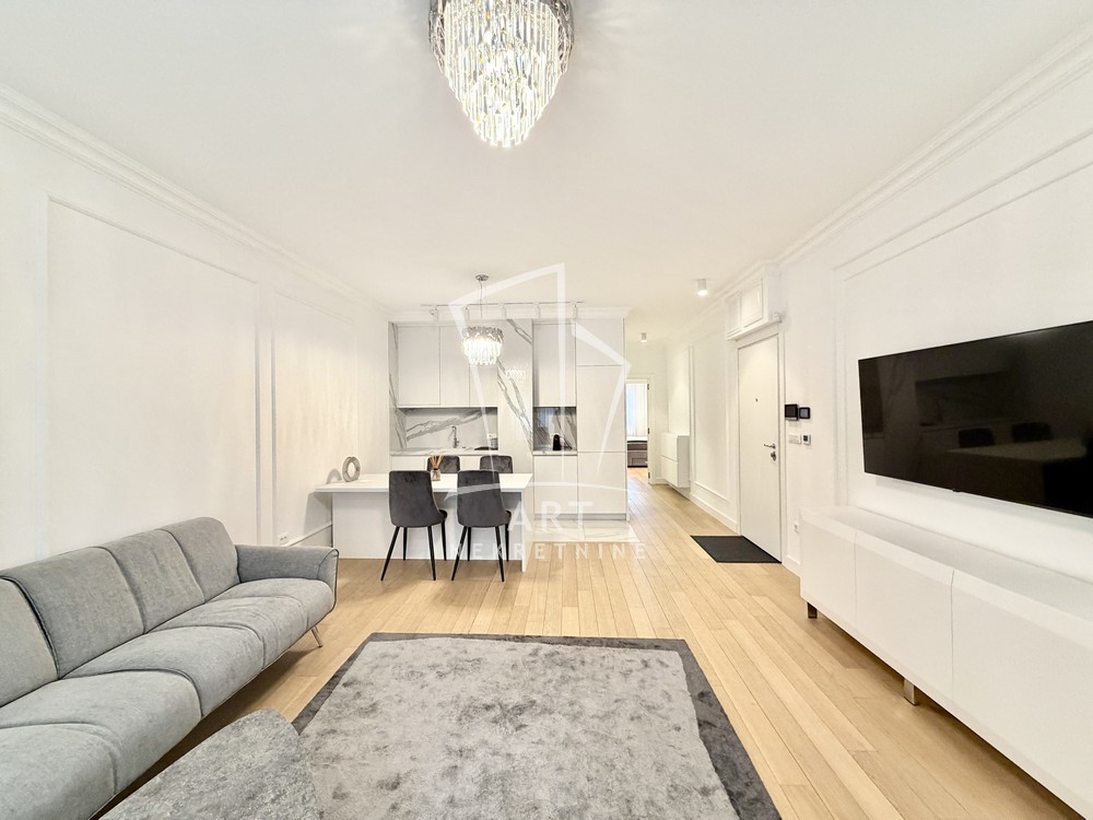 Sastoji se od velike, reprezentativne dnevne sobe, dve prostrane spavaće sobe, dva luksuzno opremljena kupatila i terase. Kompletno je opremljen Natuzzi nameštajem rađenim od visokokvalitetnih materijala, sa savremenim dizajnom.Svaki detalj u stanu pažljivo je biran kako bi pružio maksimalan komfor i osećaj ekskluzivnosti.