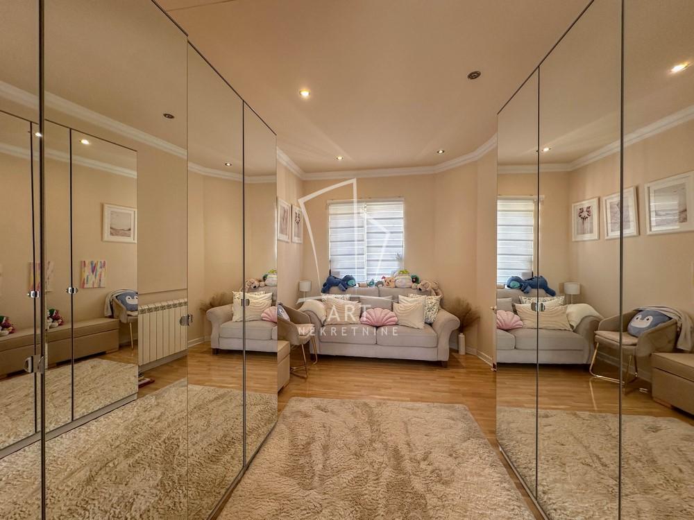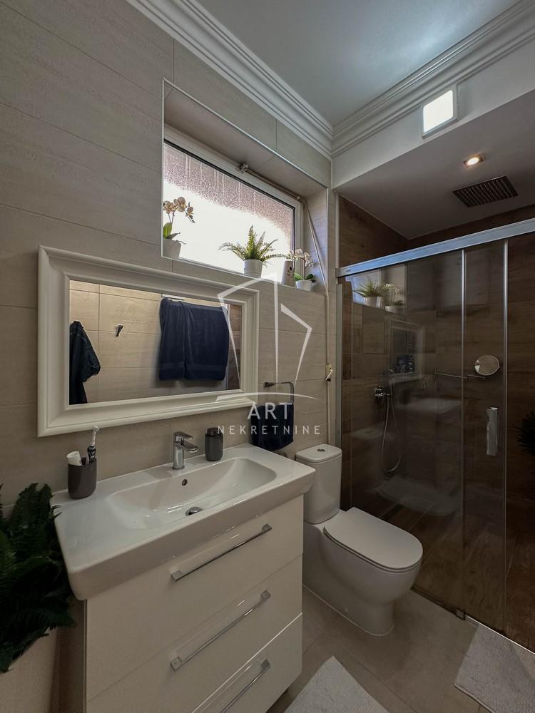 Svaka prostorija ovog stana je opremljena u modernom, otmenom stilu i korišćeni su najkvalitetniji materijali i oprema.