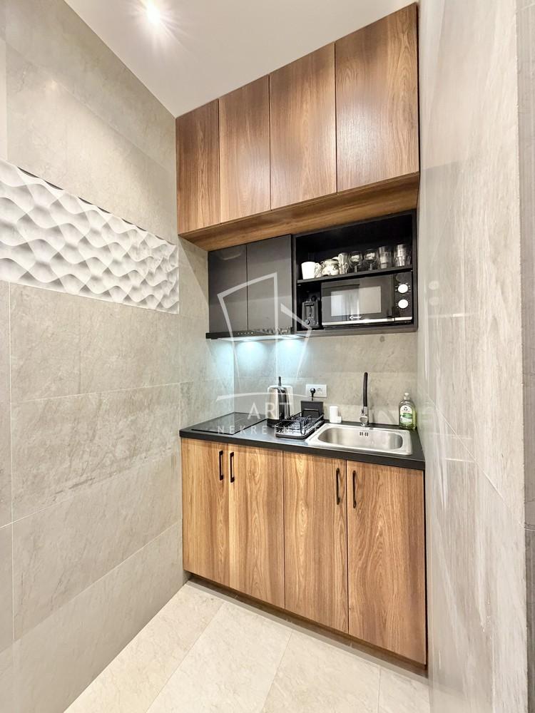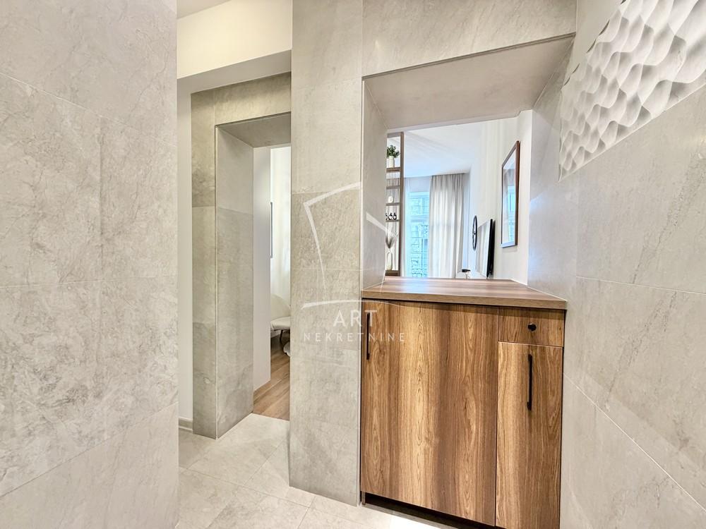 Ovaj LUX studio, sa visinom plafona od cc 3.5m, renoviran je u modernom stilu, sa konceptom da osigura udoban životni i radni prostor u samom centru grada.
