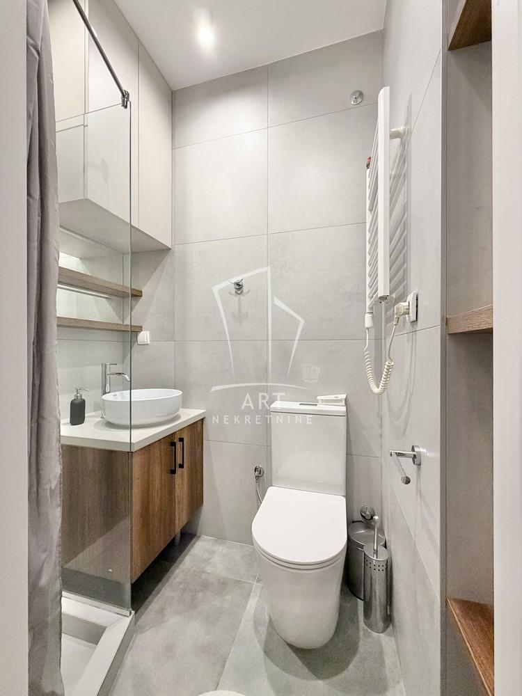 Uknjižen, kompletno namešten, salonac, renoviran, terasa, podno grejanje, klima, interfon.