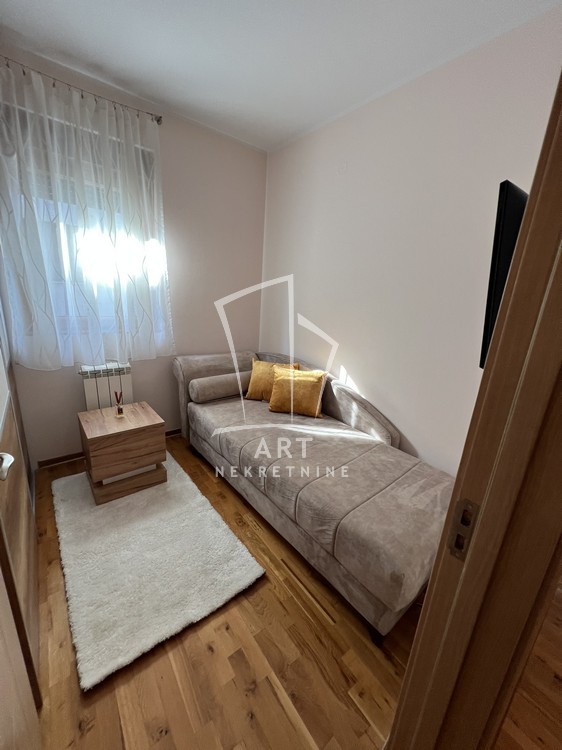 Nov, kompletno opremljen trosoban stan od 50 m2 u luksuznoj novogradnji, udaljen svega nekoliko minuta šetnje od Sportskog centra Olimp i Bulevara kralja Aleksandra.