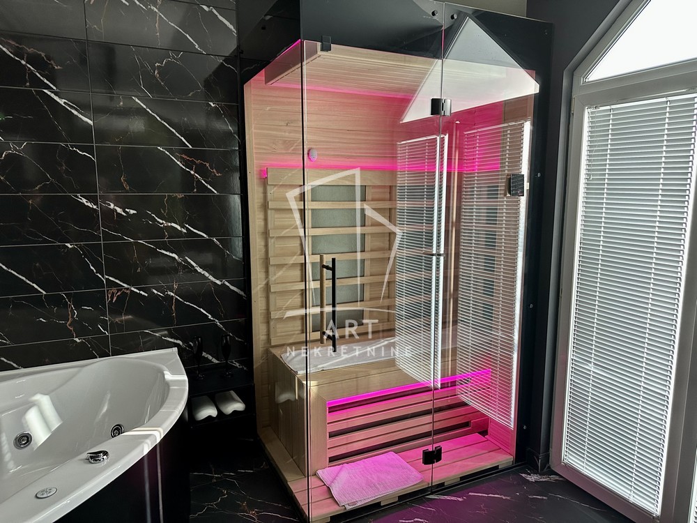 Stan je opremljen novim džakuzijem za dvoje i saunom, što ga čini savršenim mestom za opuštanje i uživanje. Dodatno poseduje terasu, a enterijer je osmišljen tako da pruži maksimalan komfor i dozu luksuza.