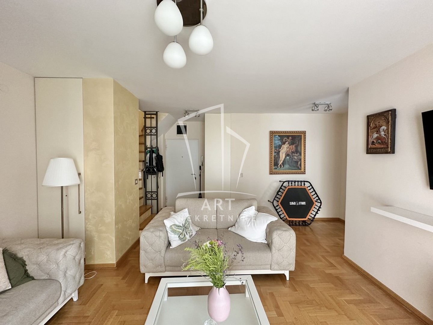 Dupleks odiše elegancijom, sofisticiranošću i pažljivo odabranim detaljima idealnim za miran porodičan život.