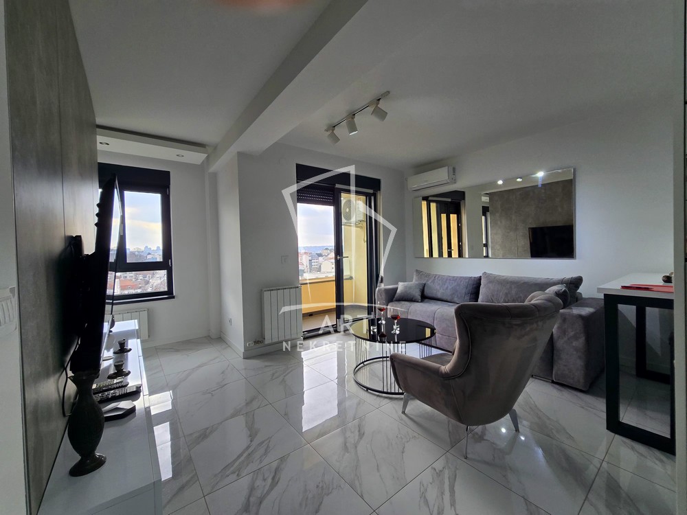 Stan je klimatizovan, poseduje centralno grejanje, mašinu za veš, kompletnu belu tehniku i dosta ugradnih elemenata za odlaganje. Velike staklene površine i visoka spratnost obezbeđuju mnogo prirodne svetlosti i fantastičan pogled.