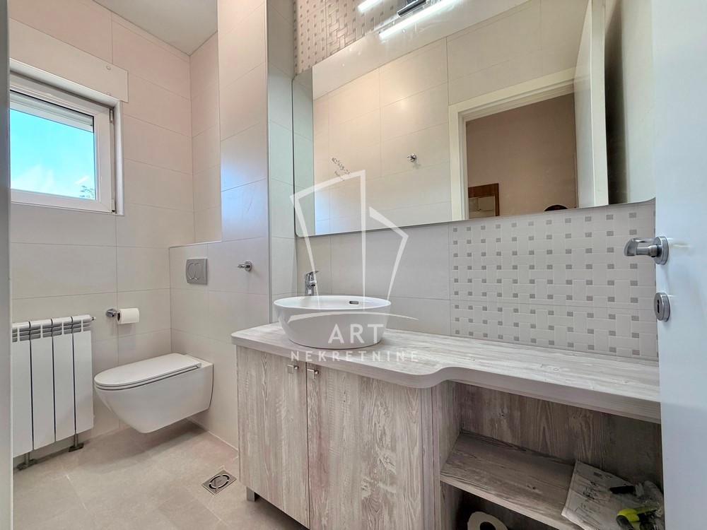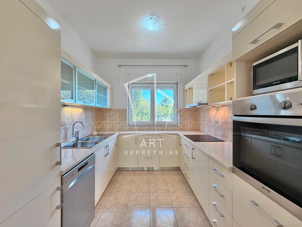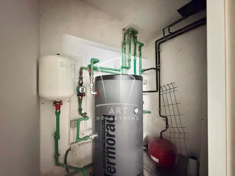 Kuća je uknjižena na 195m2, zbog bašte i terasa ima 134m2 korisnog zatvorenog prostora.