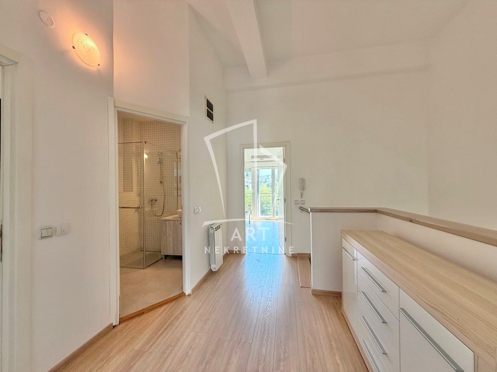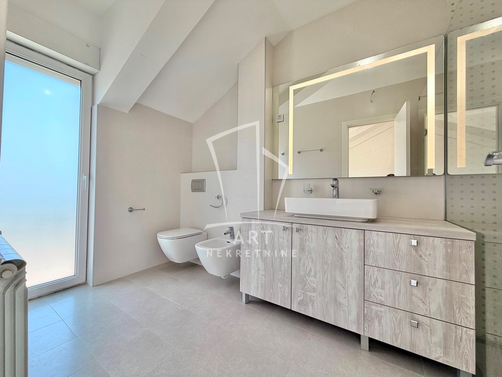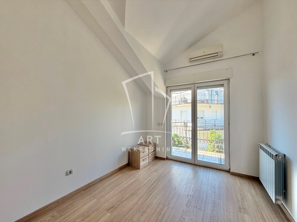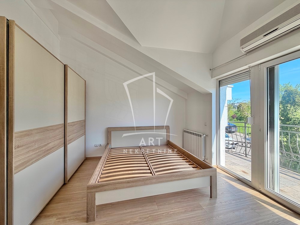 Na spratu su tri spavaće sobe, svaka ima izlaz na terasu i klima uređaj.