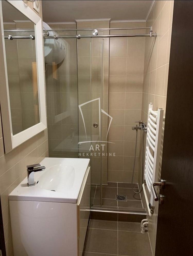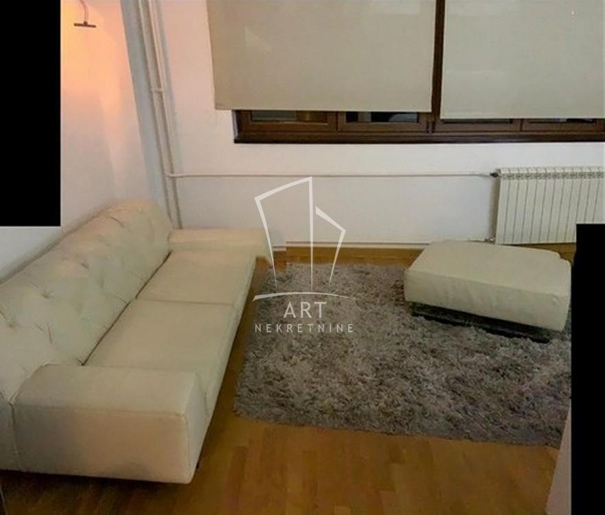 Izdajemo namešten jednoiposoban stan, uknjižen na 41m2, na 4. od ukupno 6 spratova, sa centralnim grejanjem i garažnim mestom.