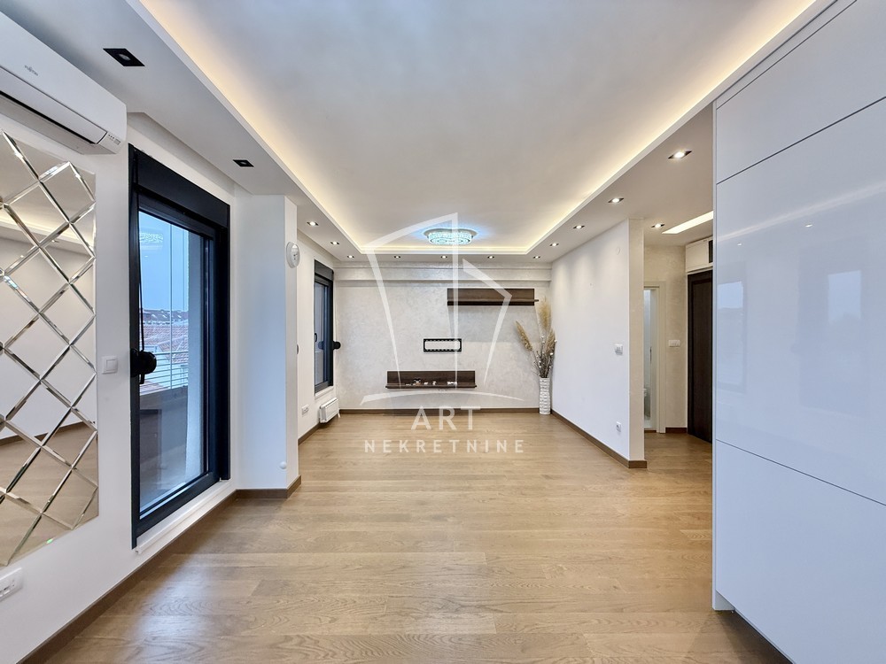 Prodaje se lux opremljen, prelep stan na odličnoj lokaciji u Beogradu, mirna lokacija, okružena zelenilom u prelepom delu Beograda- Banovo brdo. Stan se nalazi u novoj zgradi izgrađenoj 2022.godine U blizini stana se nalazi vrtič, škola, pijaca, sportski tereni, tržni centar…
