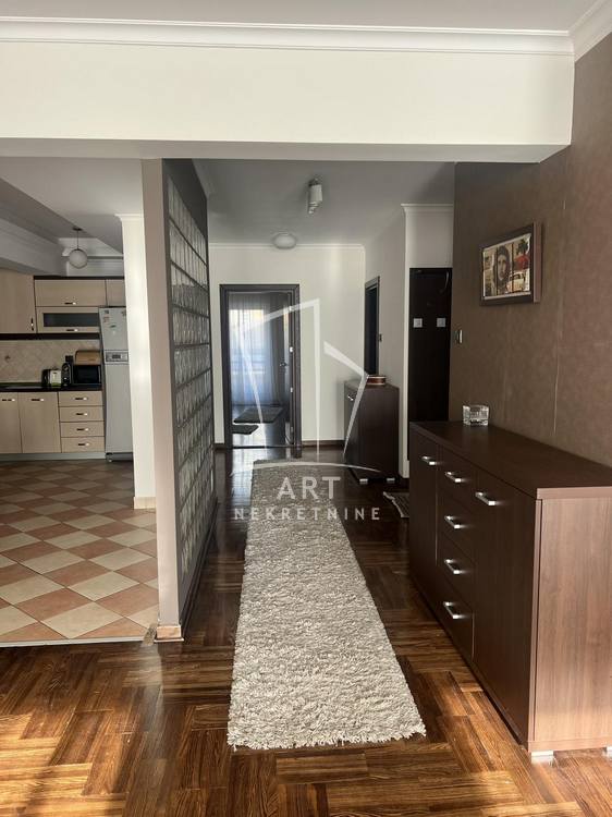 Sastoji se iz ulaznog hodnika, zatim veoma prostrane dnevne sobe sa garniturom za sedenje, a u produžetku je savremena kuhinja - open space koncept.