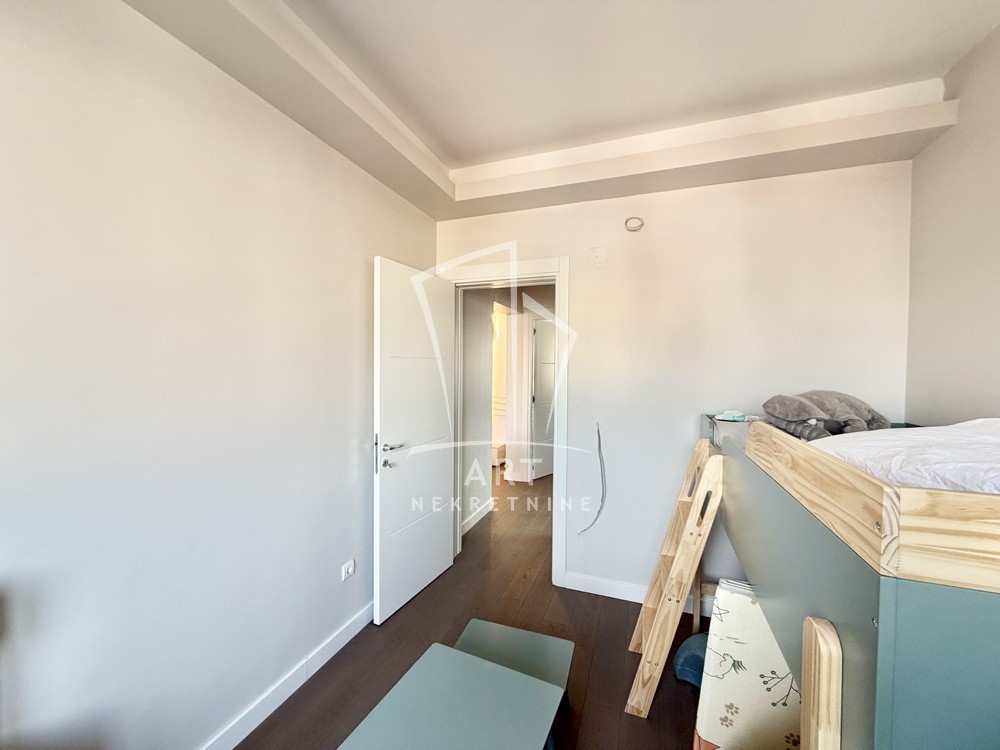 Stan se nalazi u modernoj novogradnji useljenoj pre dve godine, u zgradi sa liftom, podnim grejanjem i centralnom klimatizacijom. Na spratu se nalazi samo još jedan stan, što obezbeđuje dodatnu privatnost i mir.