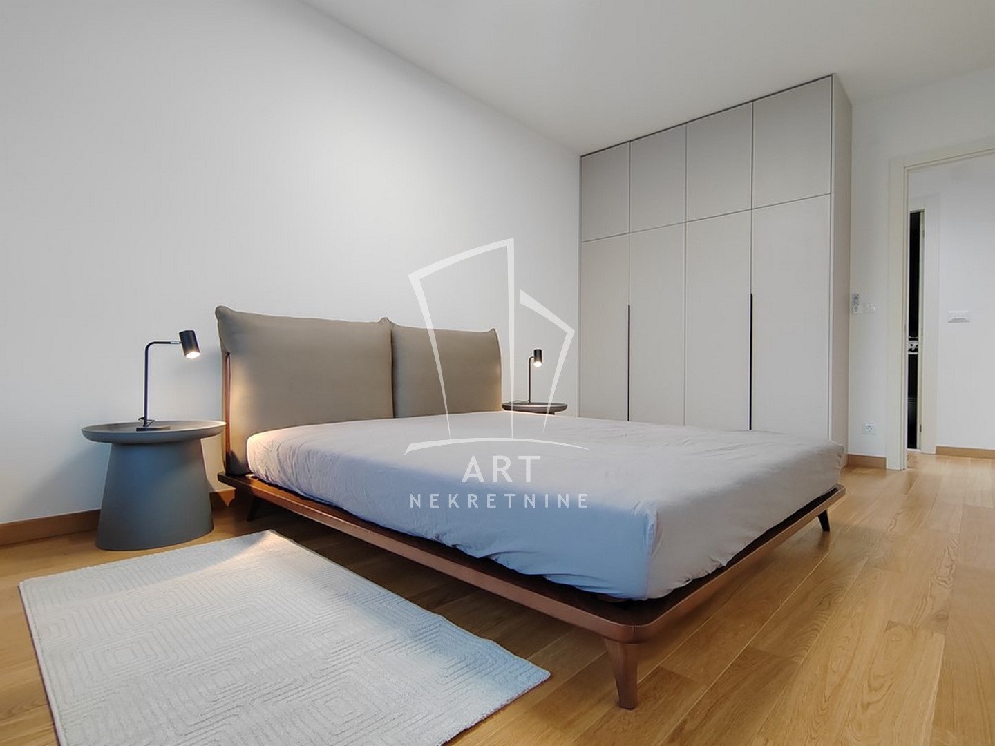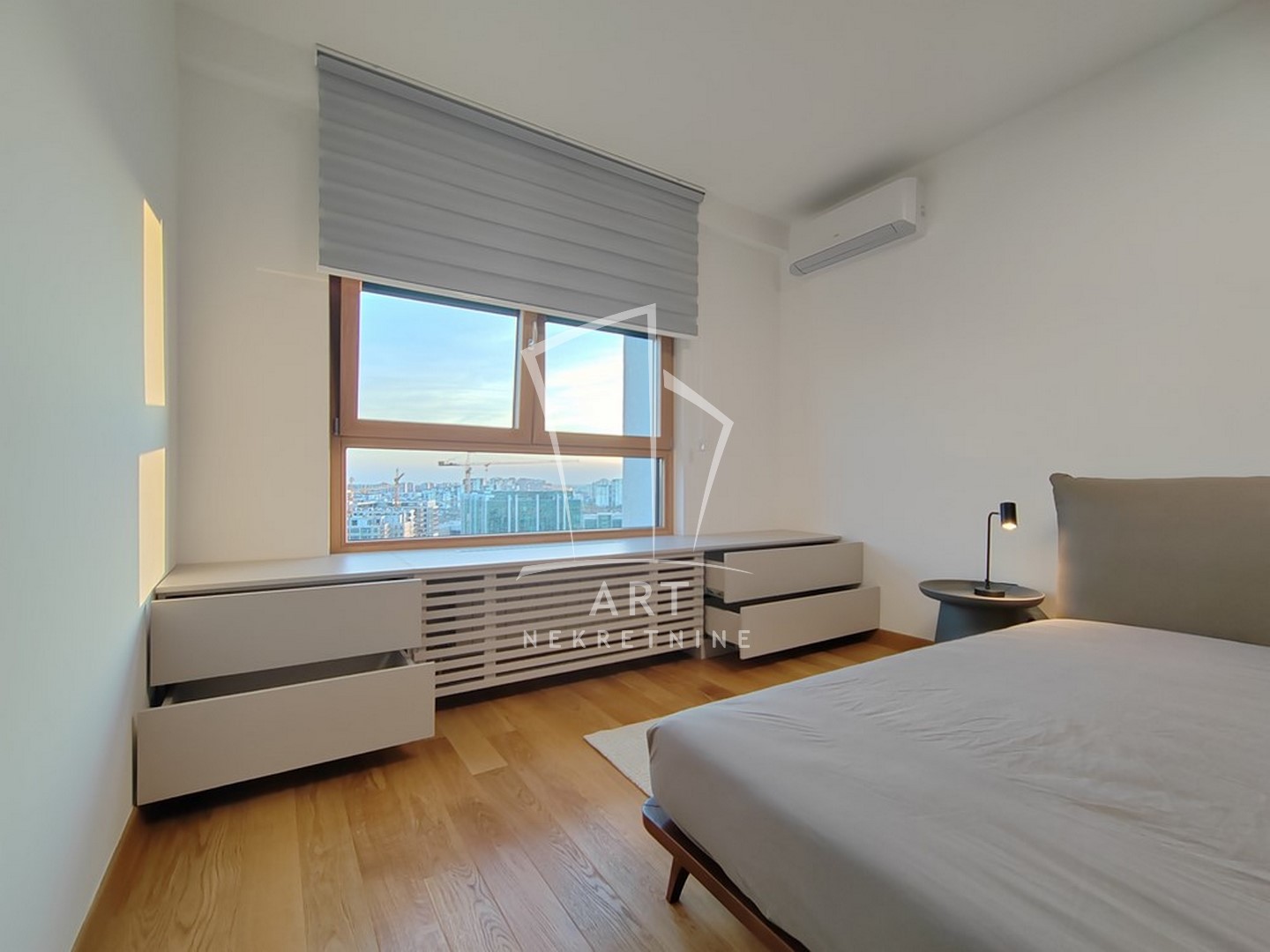 Nov, kompletno opremljen luksuzan stan u kompleksu WELLPORT na 15.spratu sa predivnim pogledom na grad.