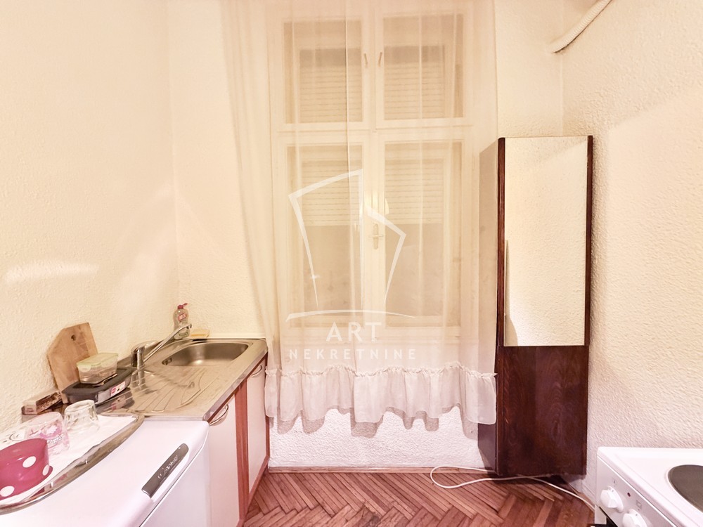 Uknjižena, veoma lepa garsonjera, površine 24m2, salonske visine, koja funkcioniše kao manji jednosoban stan.