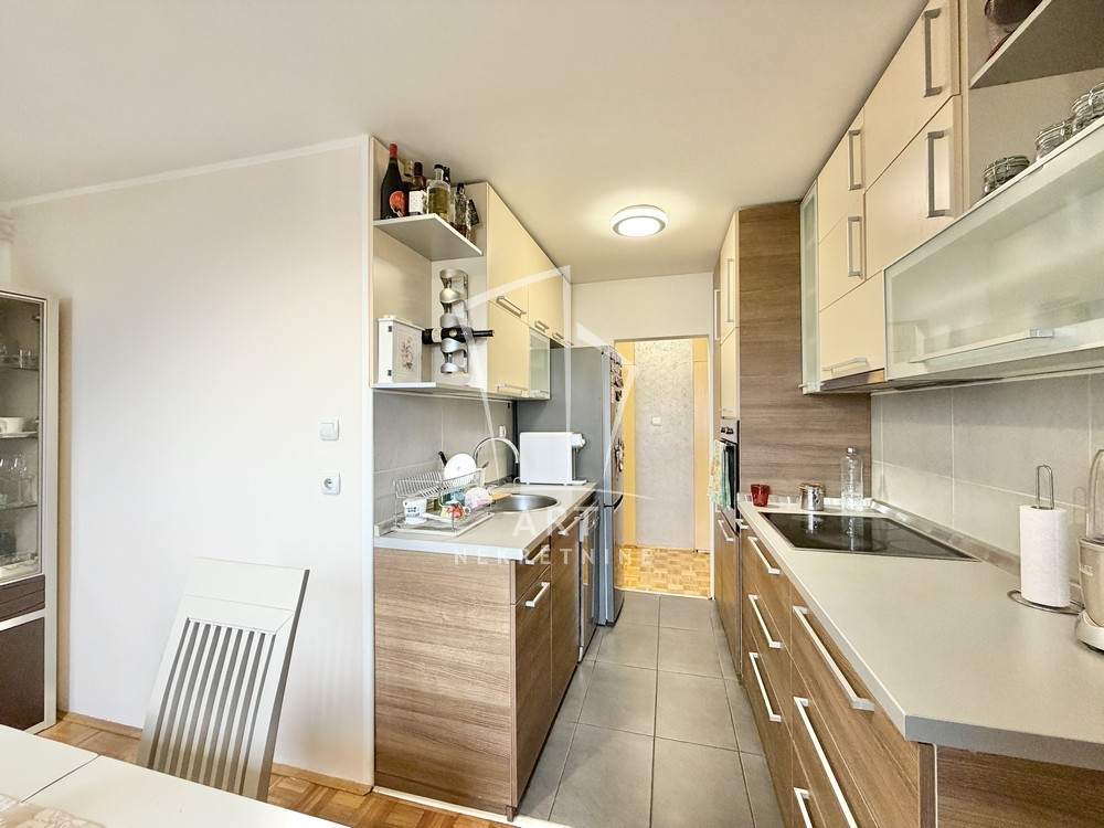 Raspored prostorija: ulazni hodnik, gde su smešteni ugradni plakari, renovirano kupatilo, kuhinja sa trpezarijom, spavaća soba (dečija), dnevna soba sa izlaskom na prelepu lođu.