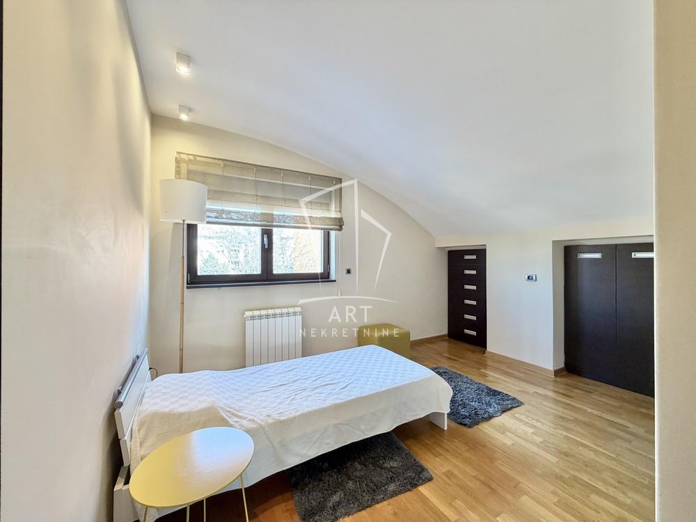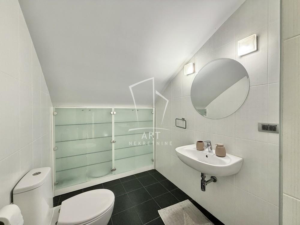 Na gornjem nivou su četiri komotne višenamenske sobe, perionica veša i dva kupatila, jedno kupatilo je sa tuš kabinom, a drugo sa kadom.