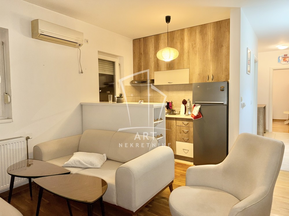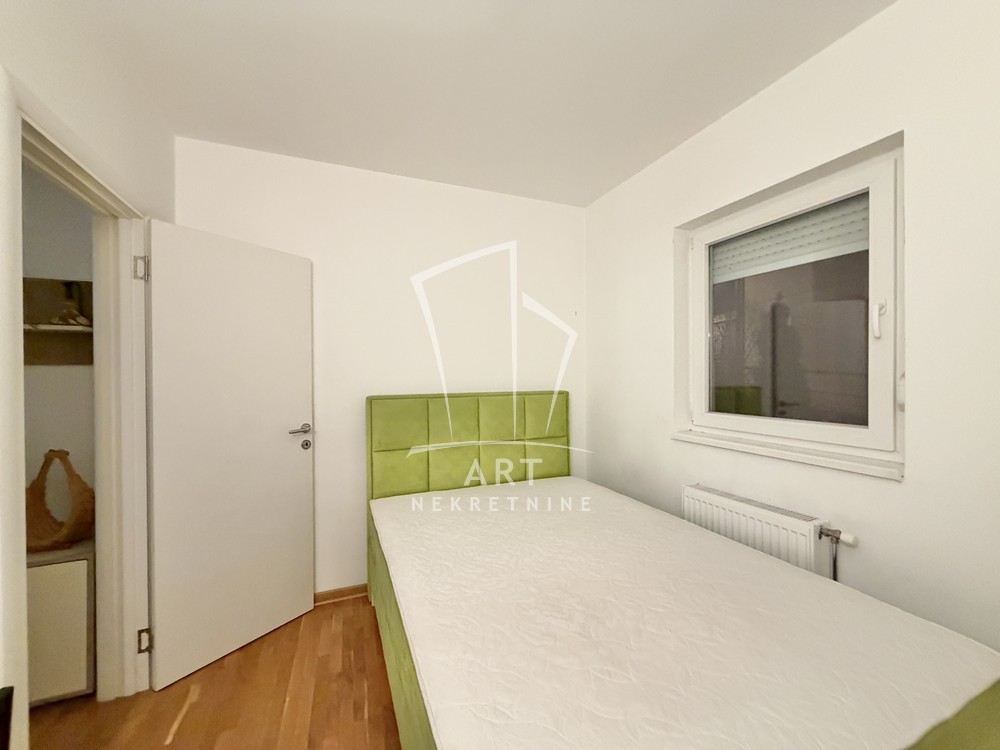 Raspored je funkcionalan, sa dve odvojene spavaće sobe, dnevnim boravkom, kuhinjom sa trpezarijom, kupatilom, prostranim hodnikom, terasom i lođom, što ga čini idealnim za porodičan život ili kao sigurnu investiciju za izdavanje.