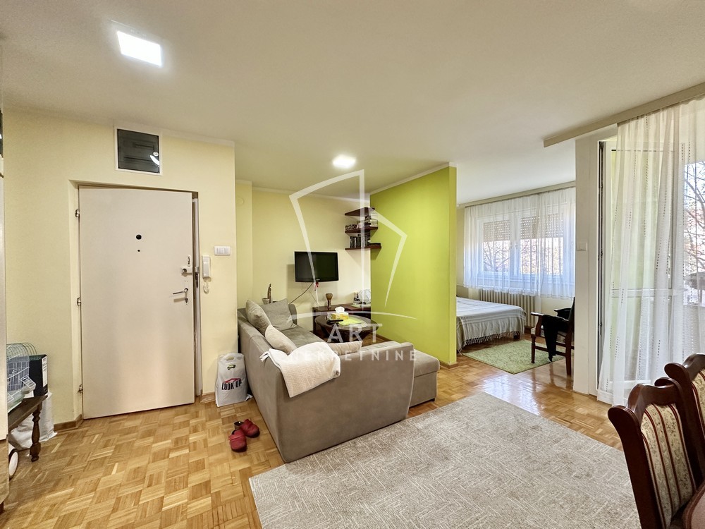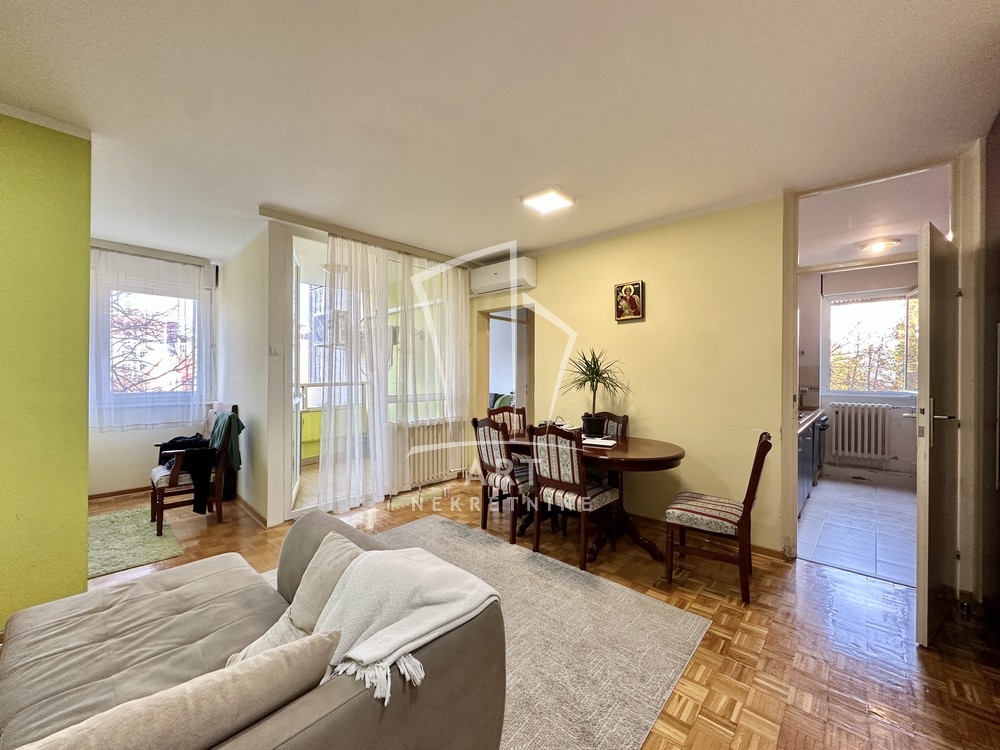 U lepom Skojevskom Naselju ulica Luke Vojvodića prodaje se svetao,delimično renoviran,dvostrano orjentisan, dobrog funkcionalnog rasporeda dvosoban stan uknjižen na 55 m2 korisne površine + lođa od 4 m2.Stan se sastoji od ulaznog predsoblja,kuhinje, dnevnog boravka koji je vrlo praktično podeljen pregradnim poluzidom i dobijen još jedan prostor za spavanje,odvojene spavaće sobe i lođe.