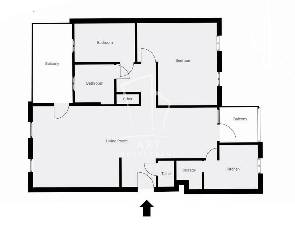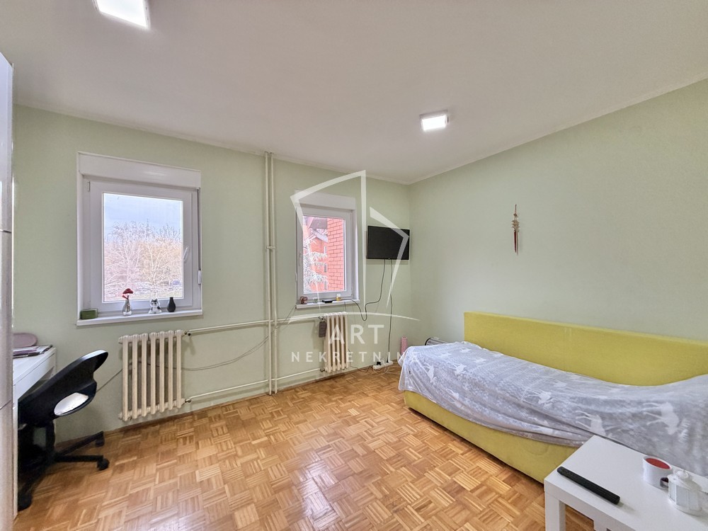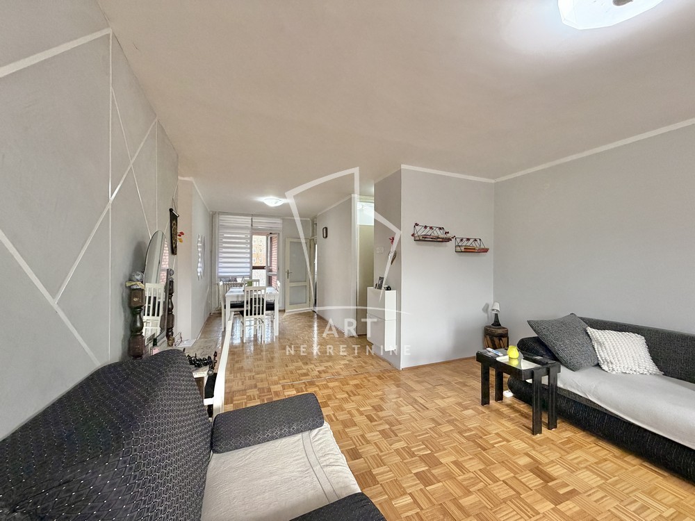 Stan se sastoji od ulaznog hodnika velike dnevne sobe koja ima izlaz na prostranu lođu, trpezarije koja ima izlaz na drugu lođu, odvojene kuhinje sa ostavom, kupatila koji je odmah na ulazu u stan u drugom bloku se nalaze 2 spavaće sobe i veliko kupatilo.