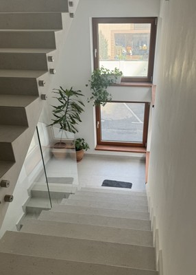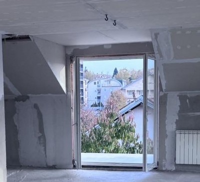 knjižen trosoban stan u sivoj fazi sa dva obeležena parking mesta u dvorištu. Nalazi se na drugom spratu stambene zgrade sa četiri stana iz 2021.u mirnoj ulici. Zgrada je u potpunosti završena, dvorište je uređeno, ostali stanovi useljeni. Instalacije su izvedene, spoljna stolarija postavljena, potrebni su završni radovi. Sastoji se od 100m2 grejne površine i 15m2 terase sa otvorenim pogledom. Grejanje je etažno. Uknjižen na vlasnika bez tereta i zabeležbi.