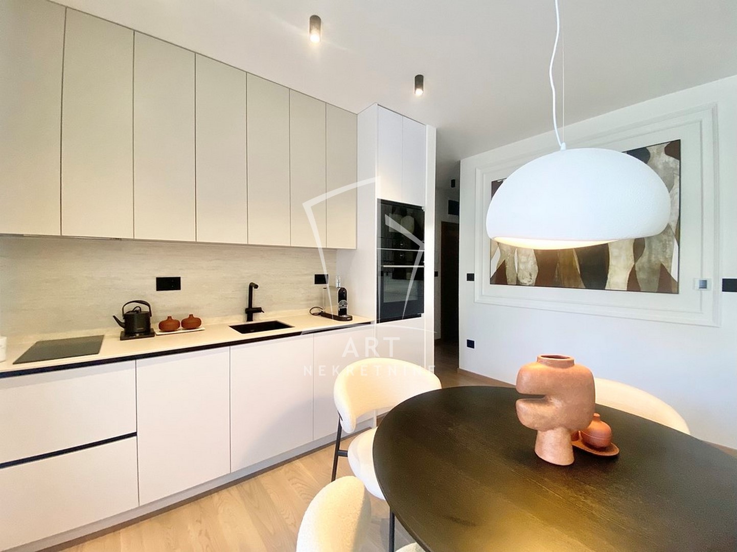 Opremljen je u minimalističkom, skandinavskom stilu sa nameštajem brendova Calligaris, Furninova, Kartell, 101copenhagen, Stoff Nagel, Fermliving, Franke, Laufen i Bosch.