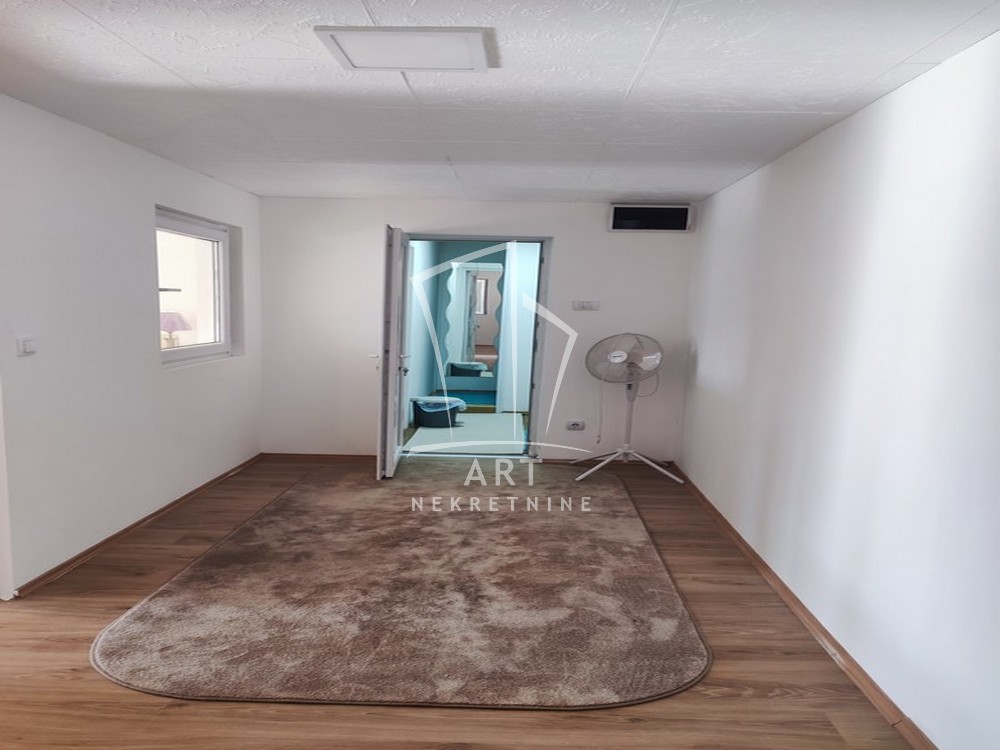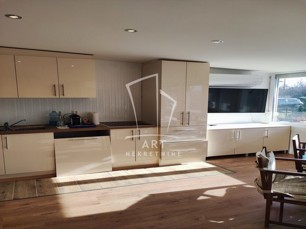 Tri sobe, kupatilo, opremljena novim nameštajem, kuhinjom i kvalitetnom belom tehnikom, aluminijumskim prozorima sa komarnicima i roletnama. Krov je predviđen za ugradnju solarnih panela. Struja i gradska voda priključeni a gas je prošao kroz ulicu. Na placu postoji i bunar kao i priključci za tri česme.