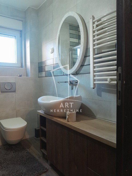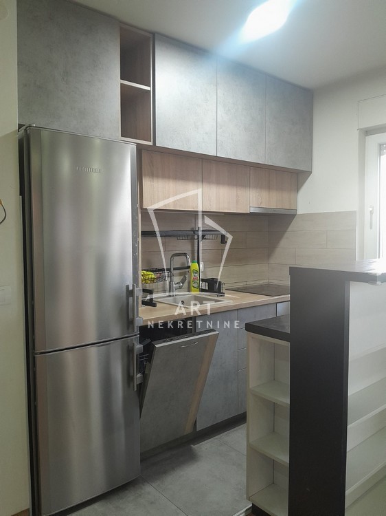 Prostorije: ulazno predsoblje, dnevni boravak, trpezarija, šankom odvojena kuhinja, spavaća soba i kupatilo.
