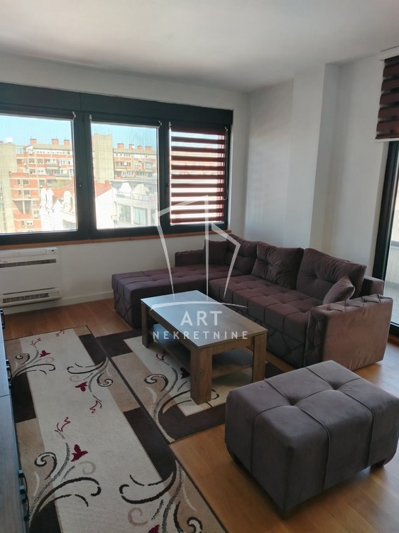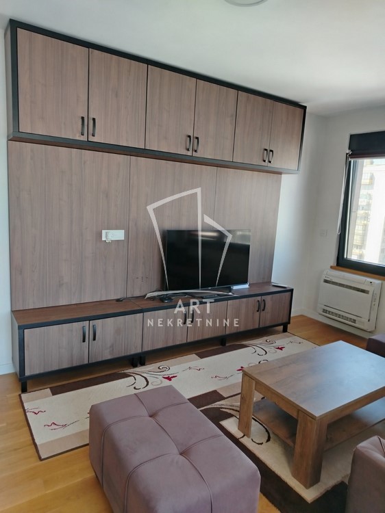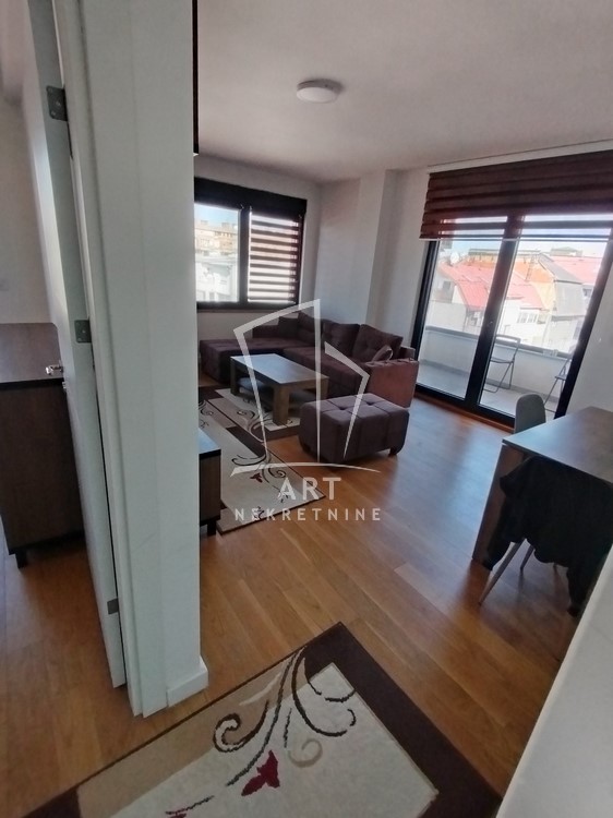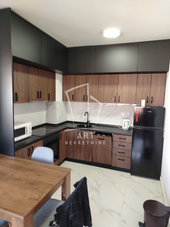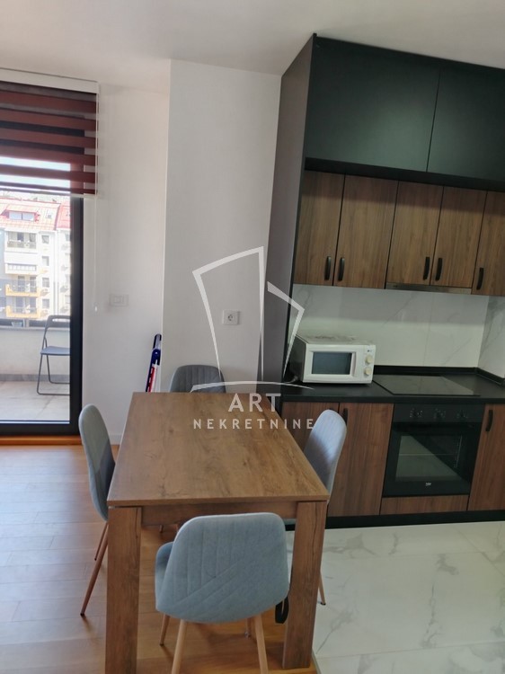 Moderan koncept, kuhinja sa trpezarijskim delom, dnevnim boravkom i odvojenom spavaćom sobom, kupatilom i terasom sa predivnim pogledom.