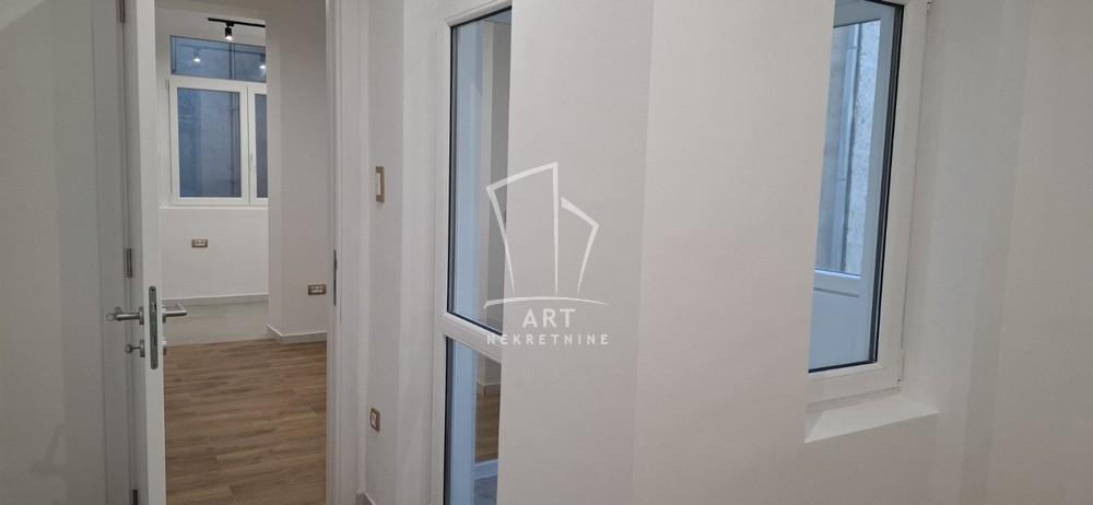 Izdaje se potpuno renoviran prazan i moderan stan od 80 m2, smešten na prvom spratu stare i reprezentativne zgrade u srcu grada, kod Zelenog venca.