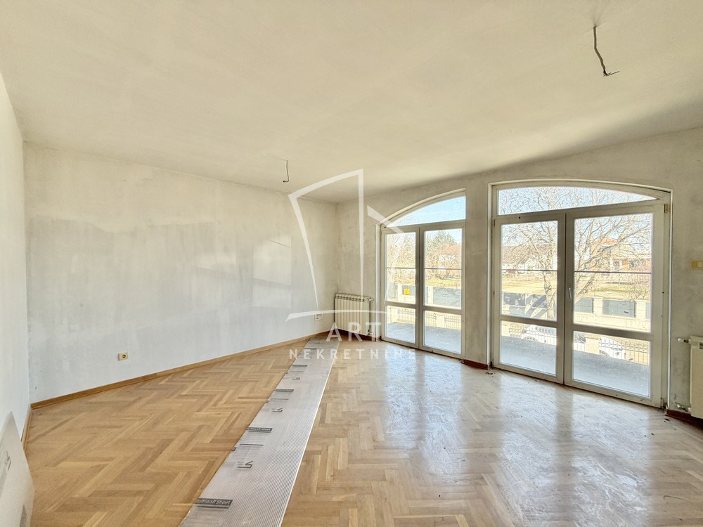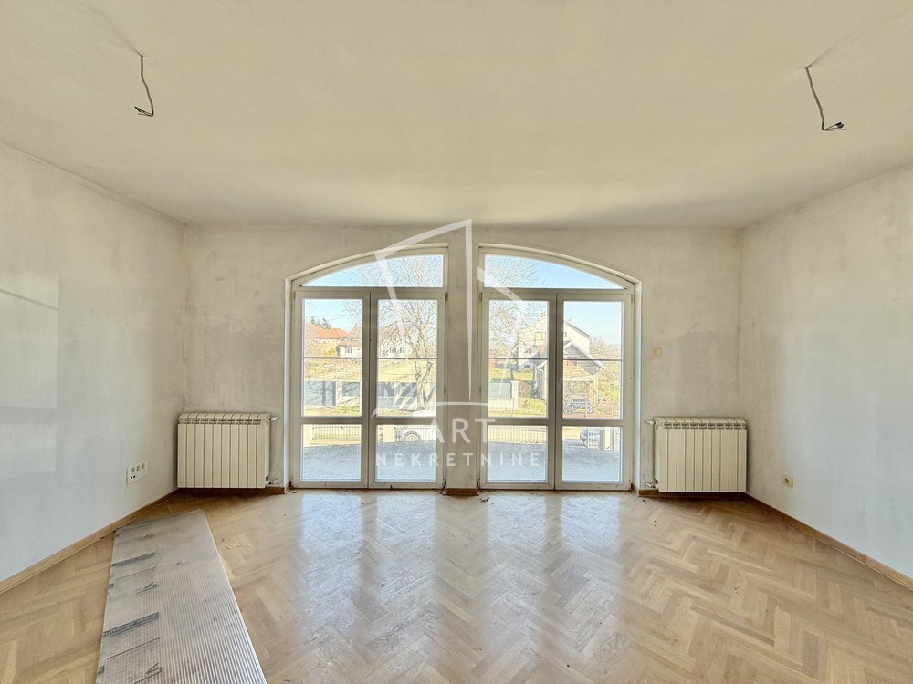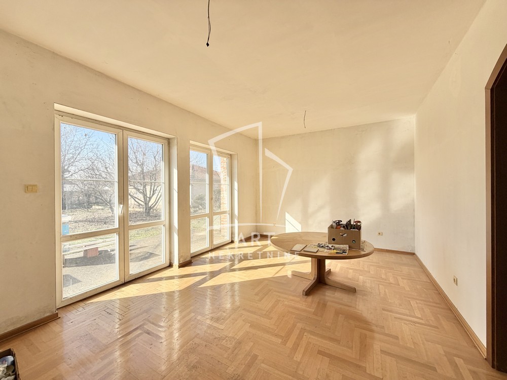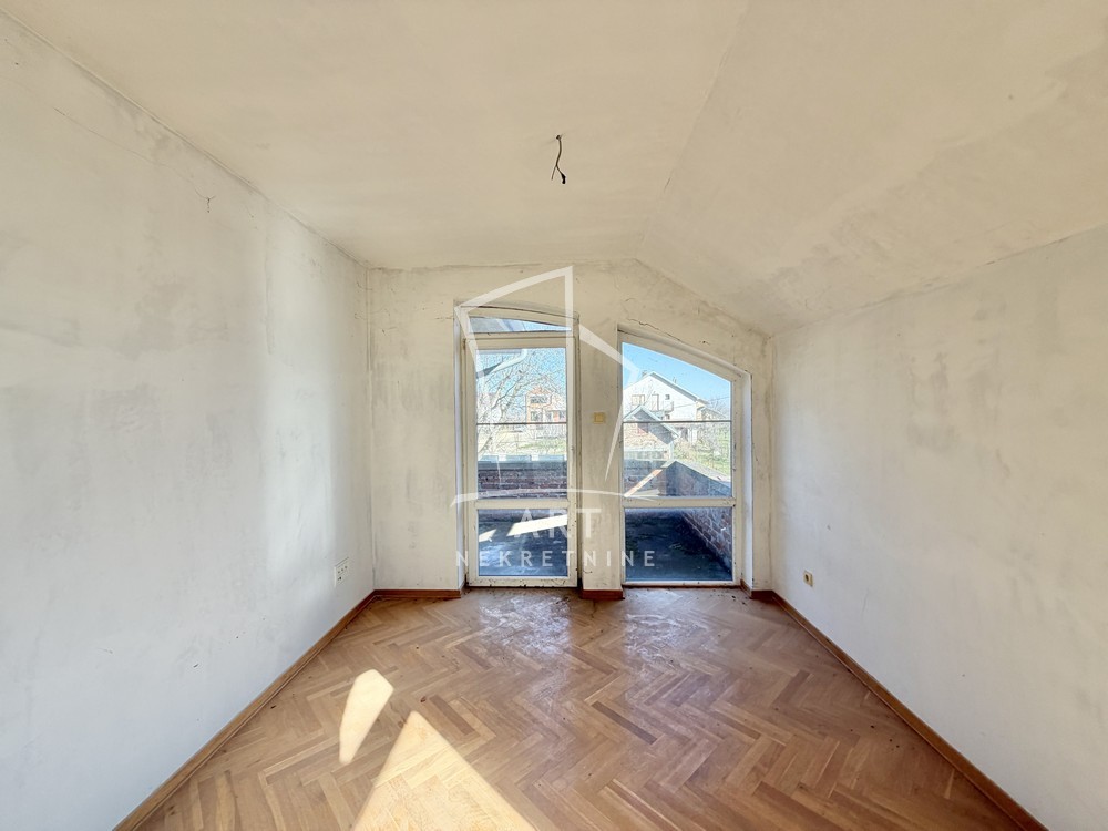 Kuća se nalazi u mirnom delu naselja, poseduje dve velike dnevne sobe, 4 spavaće sobe, kupatilo i toalet u prizemlju, na spratu izvučene instalacije za kupatila.