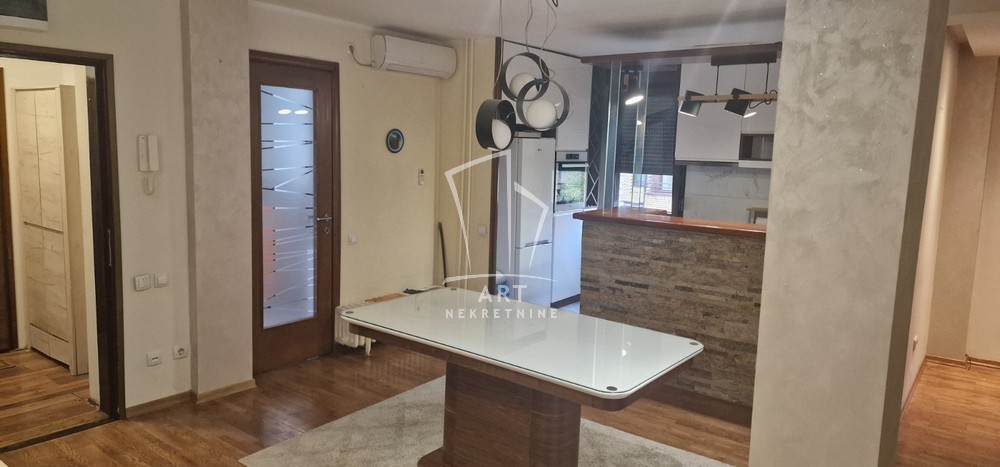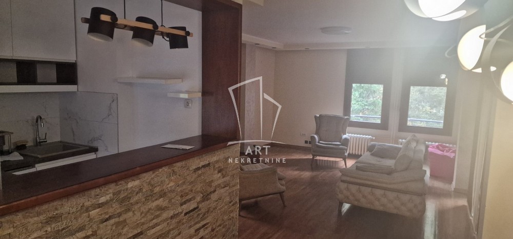 Izdaje se kompletno renoviran trosoban stan na Ceraku, u blizini Košutnjaka. Stan je opremljen novim nameštajem i ugradnom belom tehnikom. Sastoji se od velikog dnevnog boravka sa trpezarijom i kuhinjom, tri spavaće sobe, kupatila, hodnika i prostrane terase. Zgrada poseduje lift a ispred je otvoreni parking za stanare.