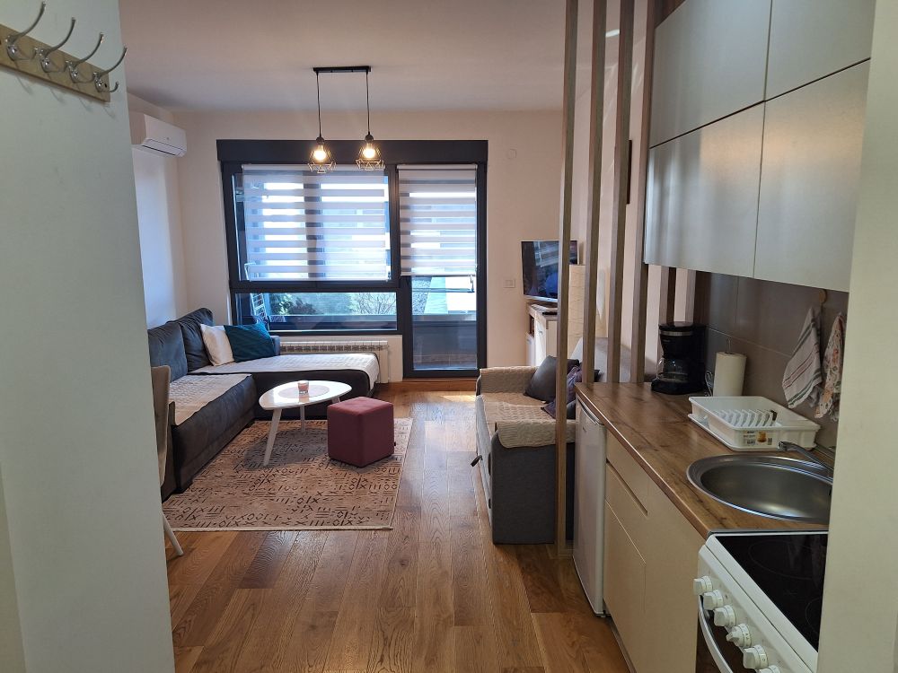 Jako lep stan u ponudi u Voždovim kapijama i opremljen.Mikrolokacija odlična kompleks ima restorane,apoteke, prodavnice.