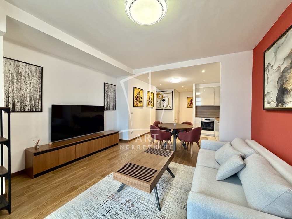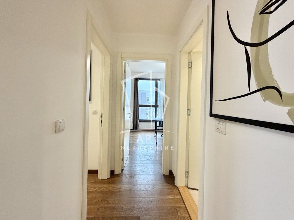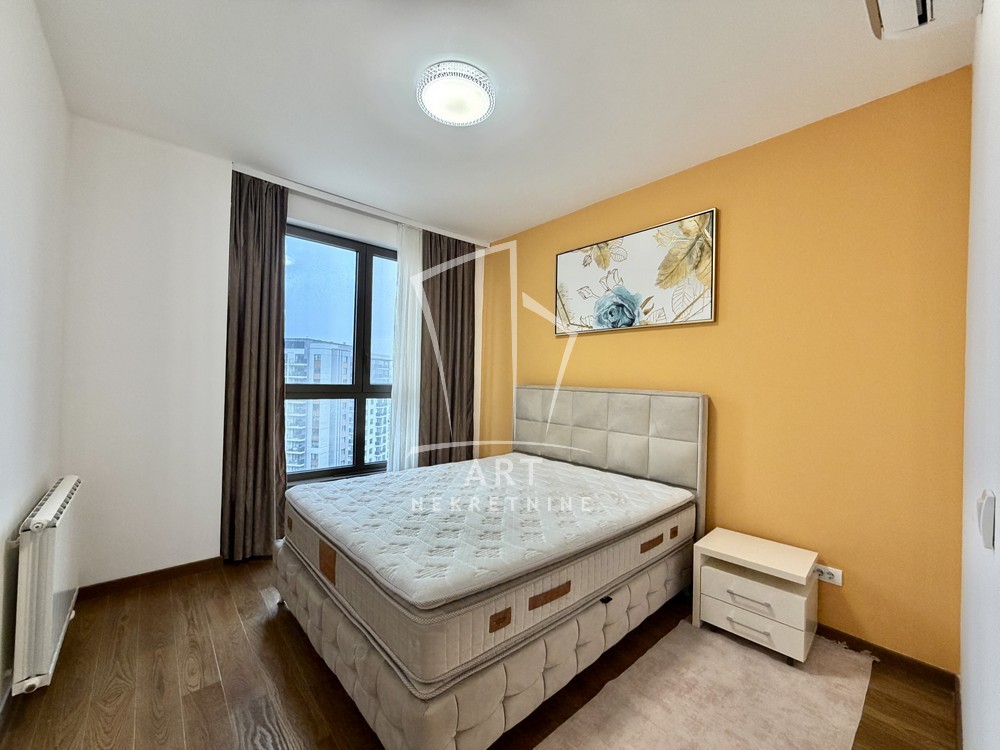 Izdaje se kompletno namešten trosoban stan od 82m2, sa pripadajućim garažnim mestom u podzemnoj garaži koje je uključeno u cenu.