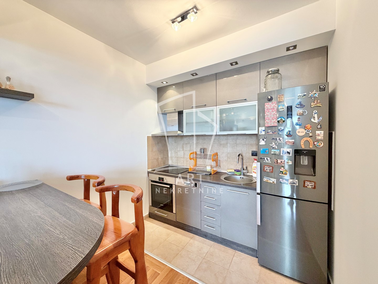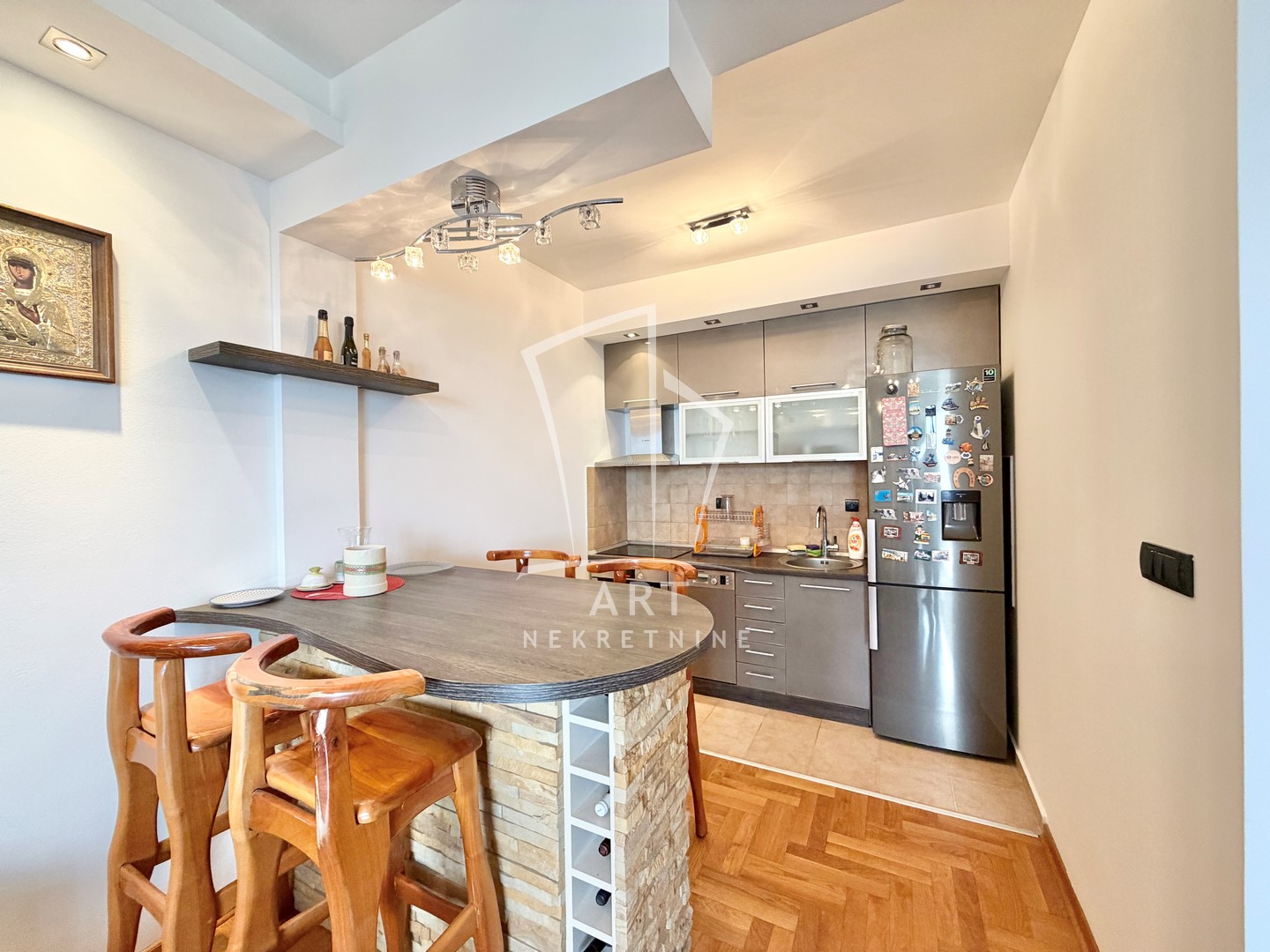 U centralnom delu naselja Vojvode Vlahovića, kod Shop and Go, ulica Miljana Miljanića, Voždovac, nudimo odličan 2.0 stan. Stan je uknjižen na 48m2, nalazi se na 3 od 4 sprata u održavanoj zgradi iz 2011 godine. Zgrada ima lift. Stan se sastoji od dnevne sobe, kuhinje, spavaće sobe, kupatila i zastakljene terase. Stan poseduje inverter klima uređaj i mogućnost priključenja na daljinsko centralno grejanje na gas. Stan je opremljen kvalitetnim kožnim nameštajem, kuhinja opremljena Bosh uređajima, prodaje se namešten. U cenu ulazi i garažno mesto za dva auta.
