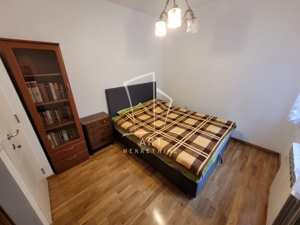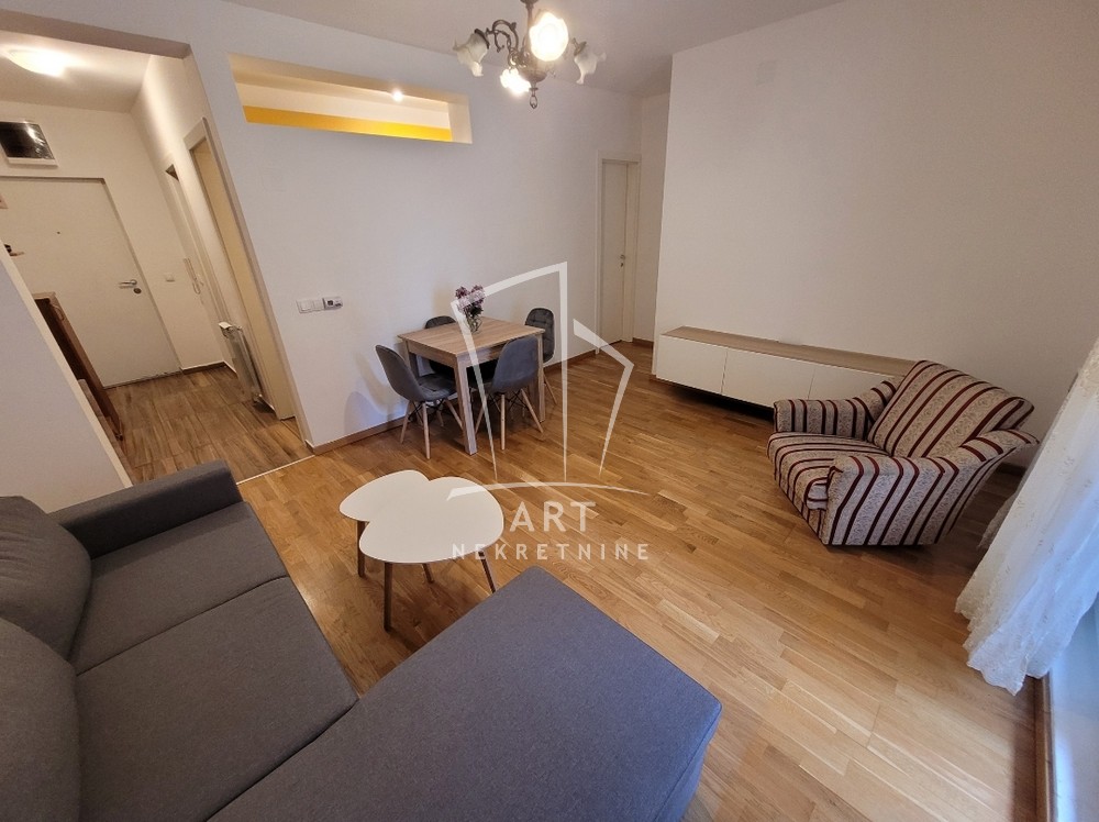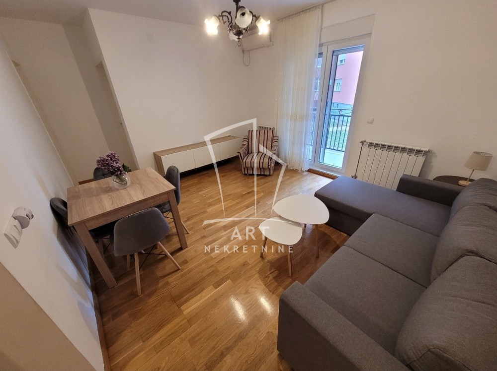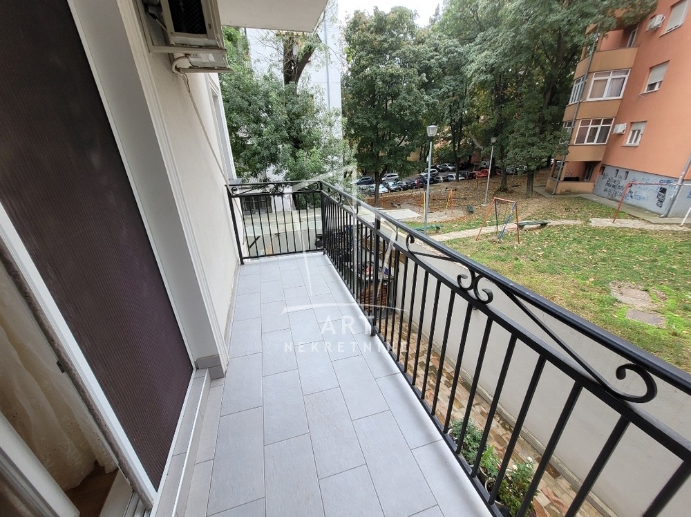 Izdaje namešten stan na dobroj lokaciji na Karaburmi.Sastoji se iz ulaznog hodnika,odvojenog kuhinjskog dela,dnevnog boravaka,dve sobe,kupatila i velike terase.Mesečni troškovi niski,grejanje je etažno,stan ima svoj kotao i plaća se po potrošnji.Mikrolokacija odlična,blizina osnovne škole,vrtića,pijace,brojnih marketa,šoping centra Karaburma.Dobra povezanost javnim prevozom sa svim delovima grada.Slobodan parking ispred zgrade.Kućni ljubimci nisu dozvoljeni.