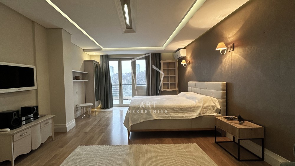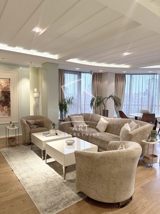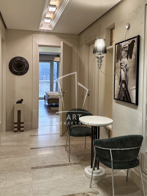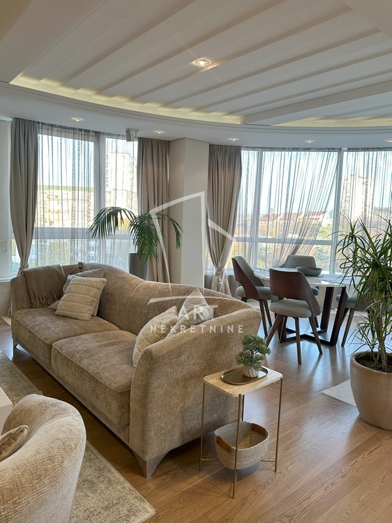Stan se sastoji od predsoblja, dnevne sobe, trpezarije, kuhinje, 3 spavaće sobe, dva kupatila, plus mali toalet.