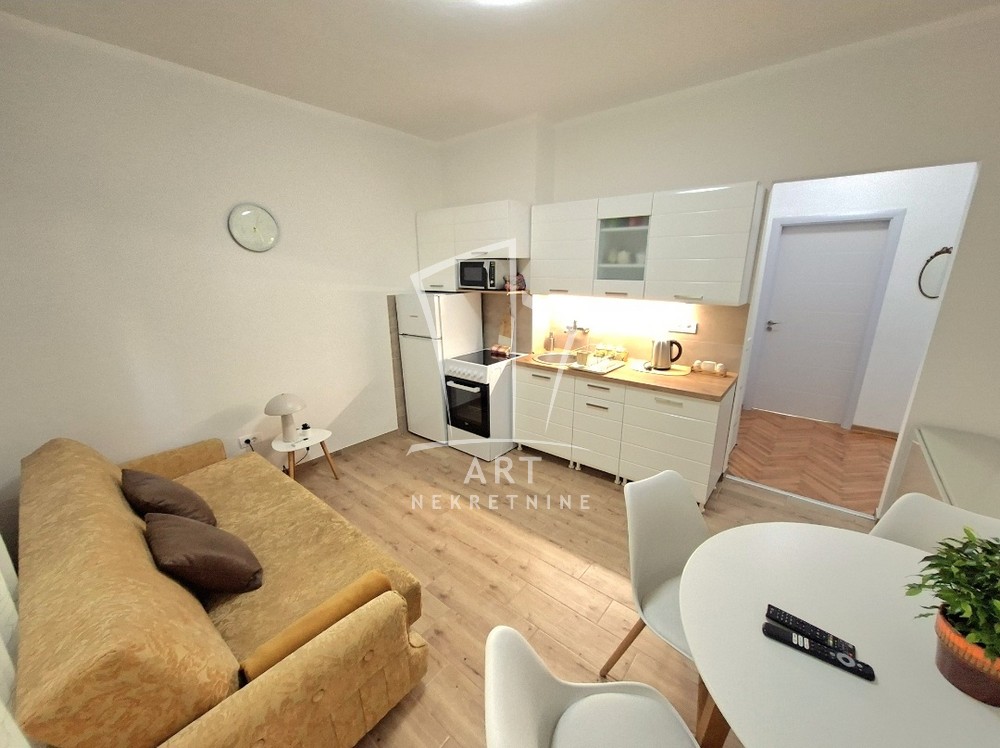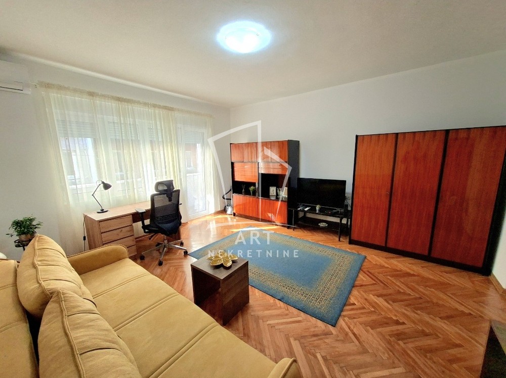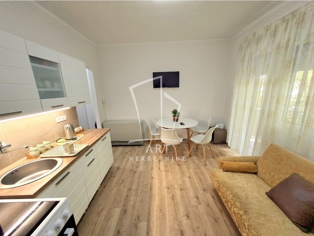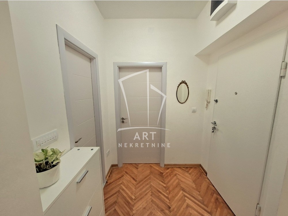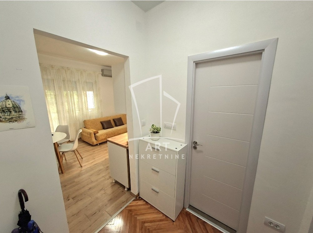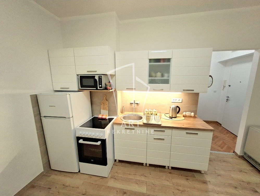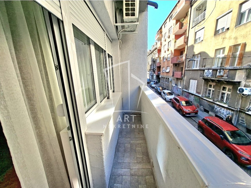 Izdaje se namešten stan na odličnoj lokaciji na Dorćolu u neposrednoj blizini pijace Bajloni.Sastoji se iz dnevnog boravka koji može biti i spavaći deo,dve terase,odvojenog kuhinjsko trpezarijskog dela i kupatila.Mesečni troškovi niski,grejanje je na inverter klime,TA ili kaljevu peć po izboru zakupca.Mikrolokacija izuzetna,blizina svih sadržaja potrebnih za svakodnevni život.Odlična povezanost javnim prevozom sa svim delovima grada.Zoniran parking ispred zgrade.Kućni ljubimci nisu dozvoljeni.