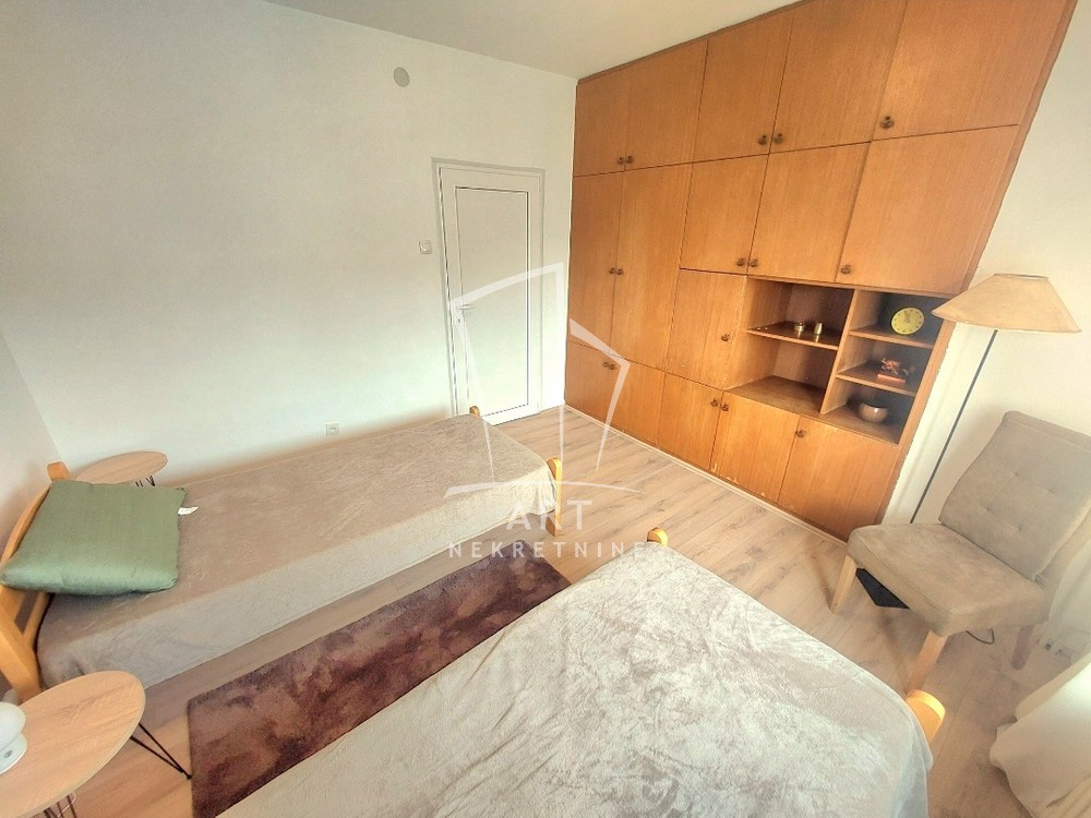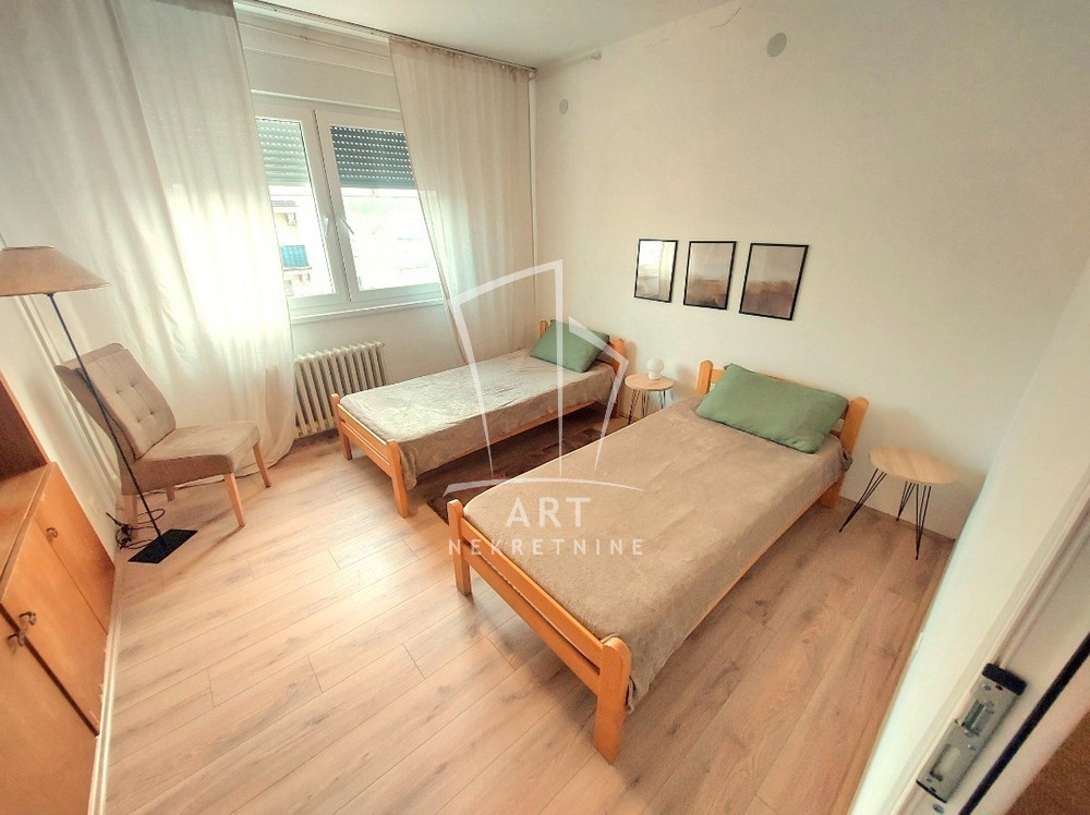 Izdaje se namešten stan na dobroj lokaciji na Karaburmi.Sastoji se iz ulaznog hodnika,odvojenog kuhinjsko trpezarijskog dela sa izlazom na terasu,spavaće sobe,kupatila i dnevnog boravaka sa izlazom na drugu terasu.Mesečni troškovi oko 160e,grejanje je centralno.Mikrolokacija odlična,bliznina vrtića,osnovne škole,brojnih marketa,pošte,šoping centra Karaburma i šoping centra Big.Dobra povezanost javnim prevozom sa svim delovima grada.Slobodan parking ispred zgrade.Kućni ljubimci nisu dozvoljeni.Minimalni period zakupa šest meseci.