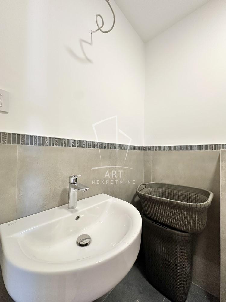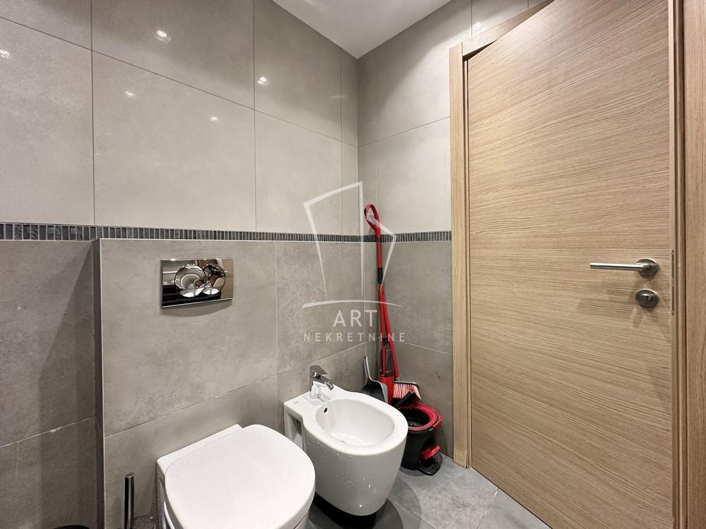 Prostorije: predsoblje, kupatilo, 2 spavaće sobe, kupatilo, toalet, kuhinja, dnevna soba sa trpezarijom, terasa.