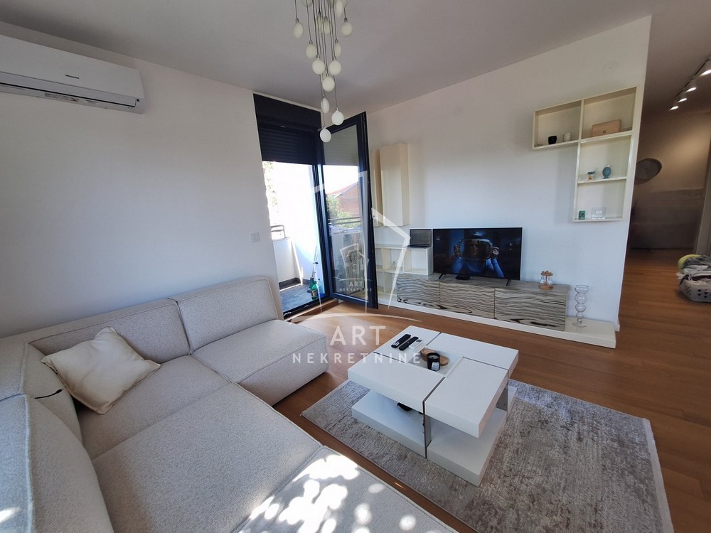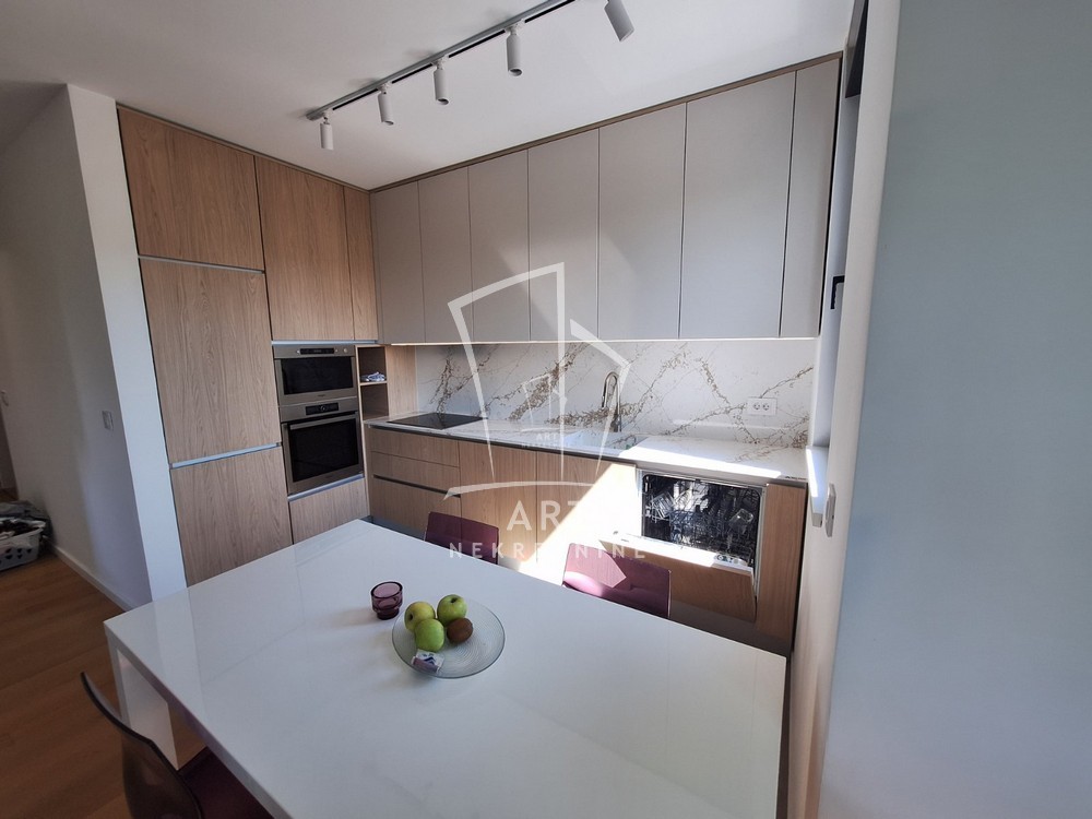 Prostor se sastoji iz dnevnog boravka sa trpezarijom i kuhinjom, spavaće sobe, dečije/radne sobe, kupatila i predivne terase.