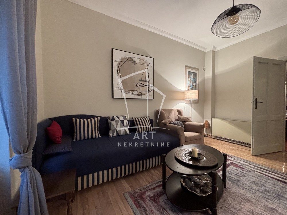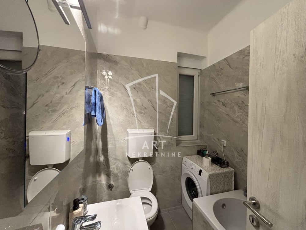 Kuhinja i kupatilo su u potpunosti opremljeni, a zahvaljujući kvalitetnoj zvučnoj izolaciji i enterijeru stan pruža maksimalan komfor u samom srcu grada.