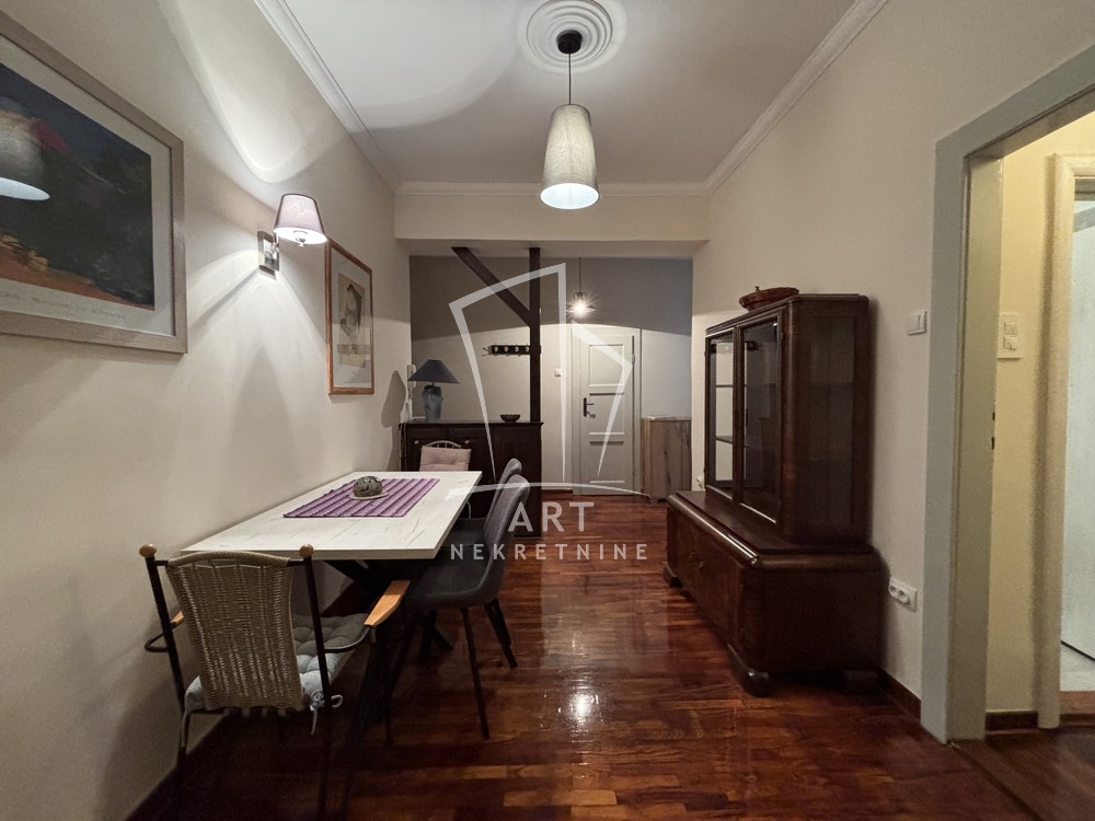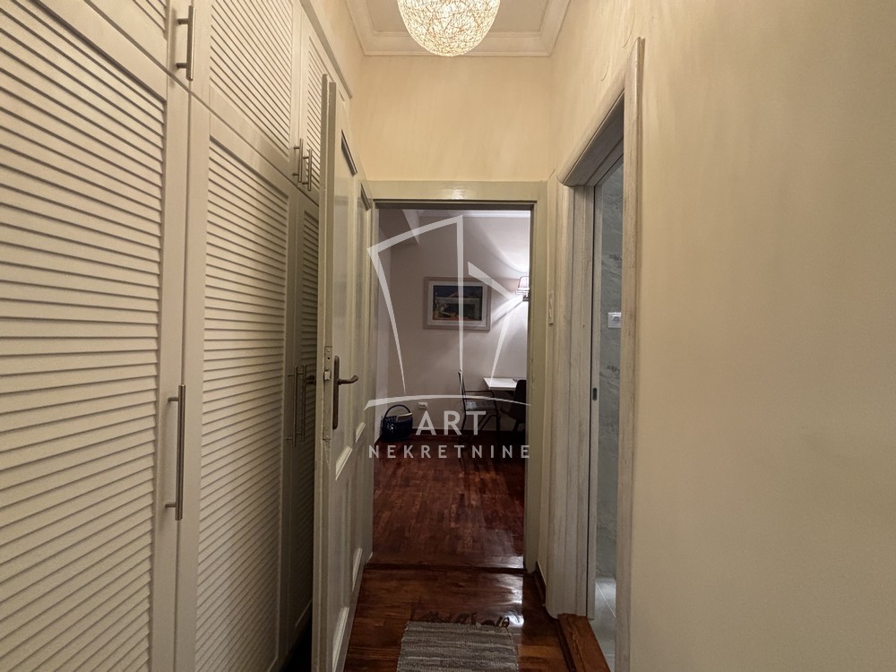 Izdaje se renoviran i potpuno opremljen stan, uknjižen na 125m2 korisne površine, a izdaje se jedinica od 65m2 u Kosovskoj ulici na trećem spratu, u samom centru Beograda.