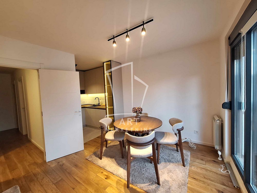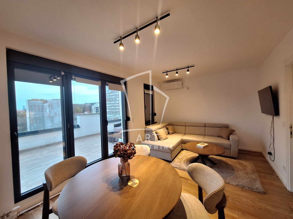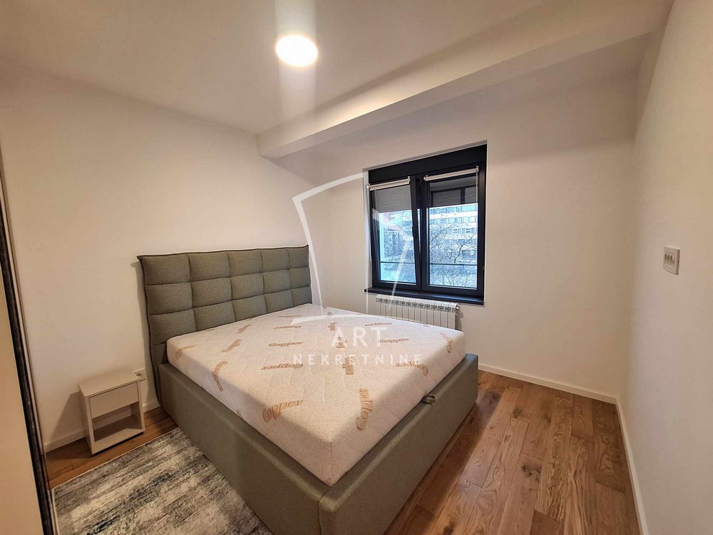 Izdaje se nov, neuseljavan, troiposoban stan u novogradnji na Dušanovcu. Zgrada ima video nadzor, interfon i lift. Kompletno namešten, moderno opremljen. Korisne površine 64m2 plus 15m2 terase. Ima uveden internet i kablovsku.