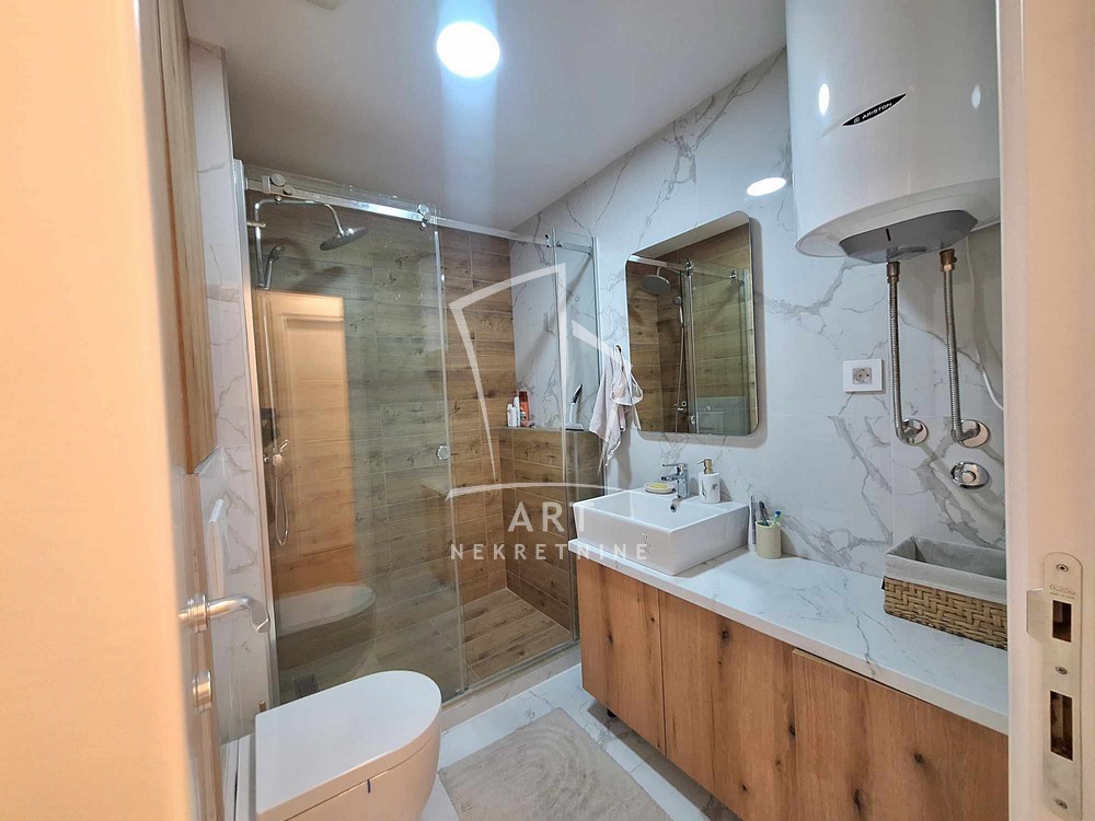 Sastoji se iz prostranog ulaznog dela, dnevne sobe open space koncepta sa trpezarijom i kuhinjom, tri spavaće sobe, kupatila, ostave i terase. Grejanje je centralno, ali po potrošnji što je velika prednost.