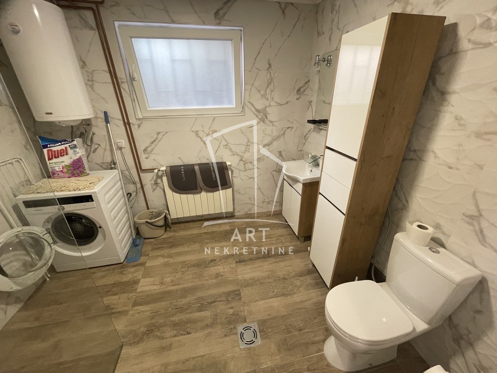 Izdaje se renoviran, neuseljavan i kompletno namešten prostran dvosoban stan površine 60m2. Stan je funkcionalnog rasporeda i obuhvata modernu kuhinju povezanu sa dnevnim boravkom i trpezarijom u open space konceptu, prostrano kupatilo i komfornu spavaću sobu.