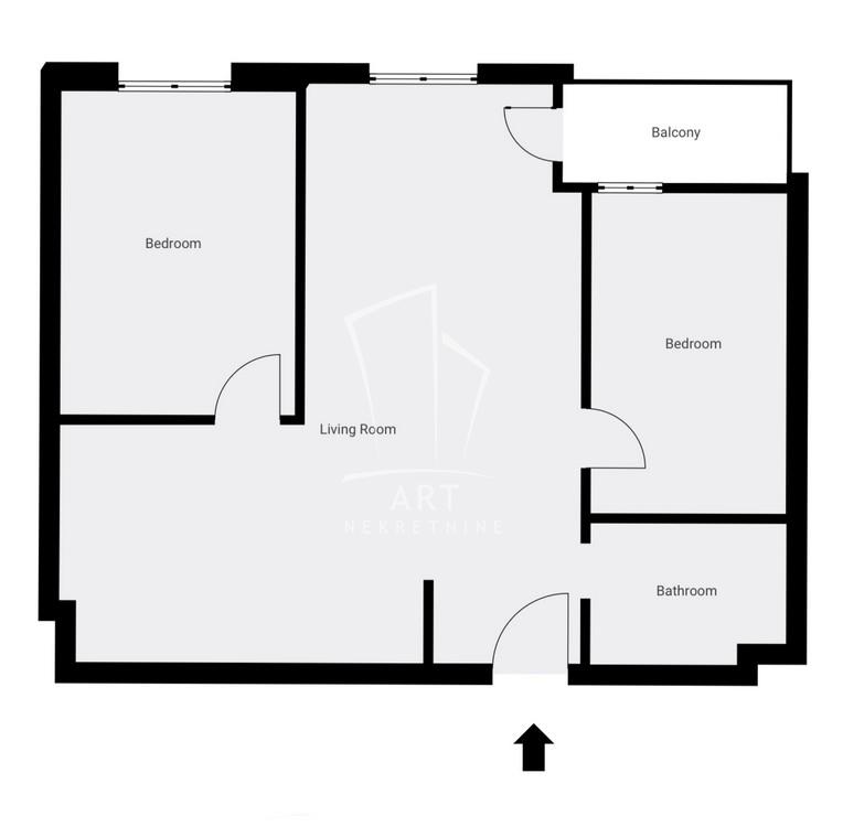Prostorije stana: predsoblje, dnevna soba sa izlazom na lođu, kuhinja sa trpezarijom, 2 spavaće sobe i kupatilo.