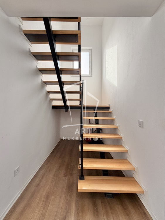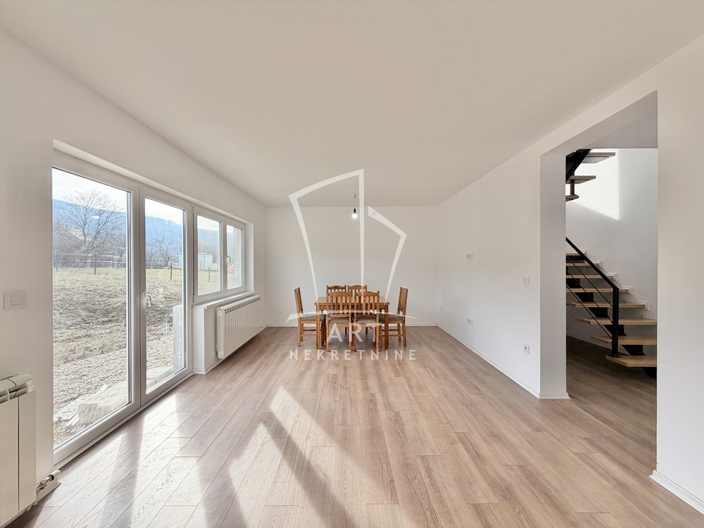 - Na prvom spratu se nalaze kuhinja, kupatilo i prostrana dnvena soba sa dvostrukim staklenim vratima koja vode na terasu (koju ćete imati prilike da napravite po vašem ukusu)