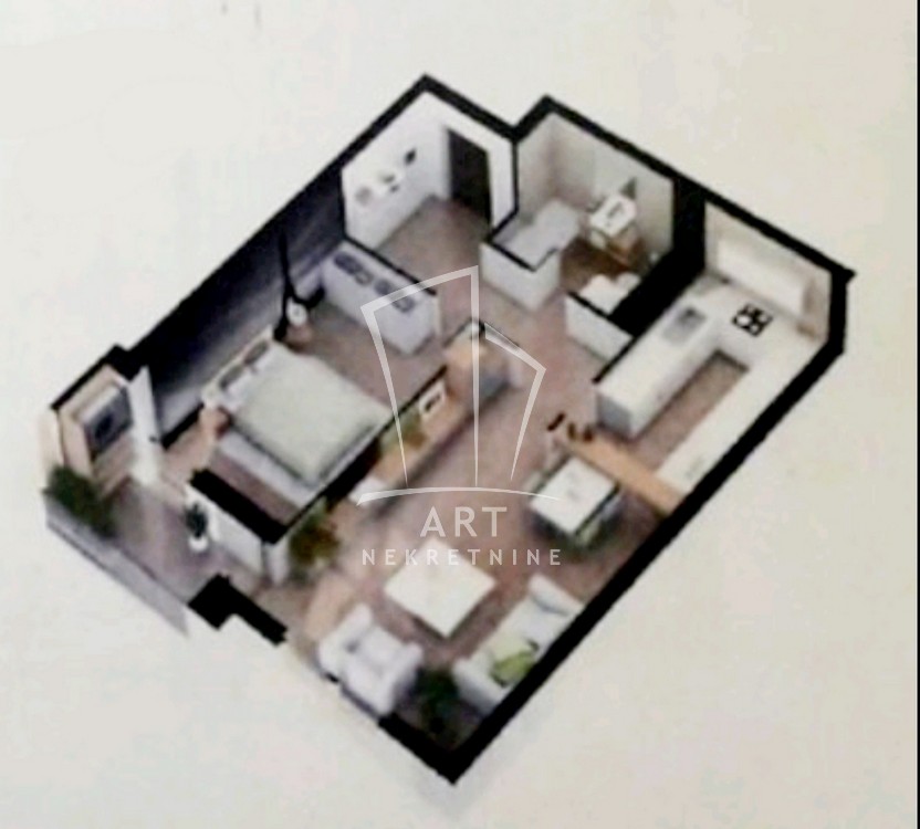 Poseduje prostranu dnevnu sobu, novu modern kuhinju, spavaću soba, terasu.