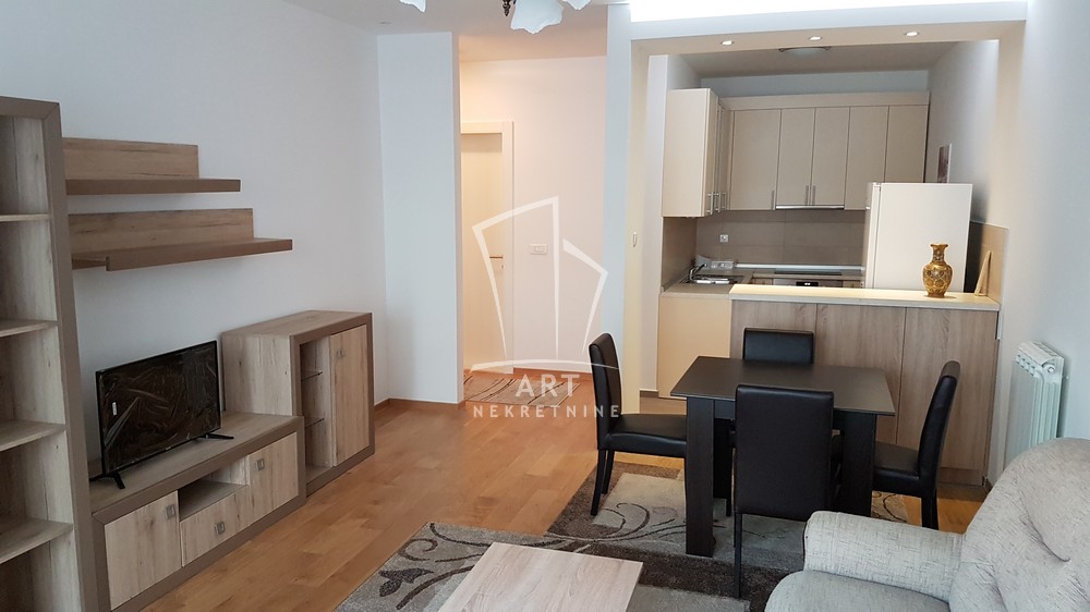 Stan je opremljen novim nameštajem, svetao, prostran, površine 60m2. Nalazi se u sklopu Central gardena koji poseduje svoj park, parking, obezbeđenje…