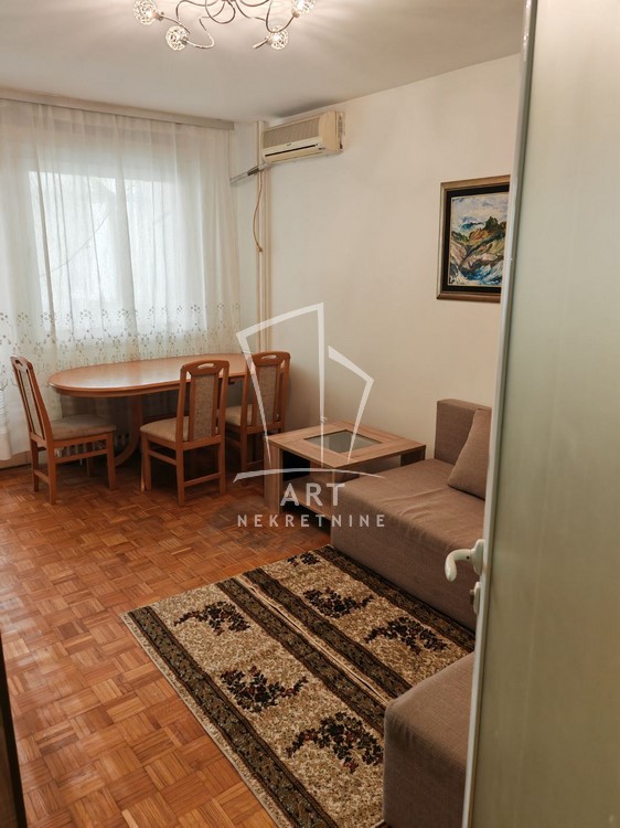 Izdaje se lep, funkcionalan i namešten dvosoban stan na 2. spratu u dobro održavanoj zgradi u Bloku 62.